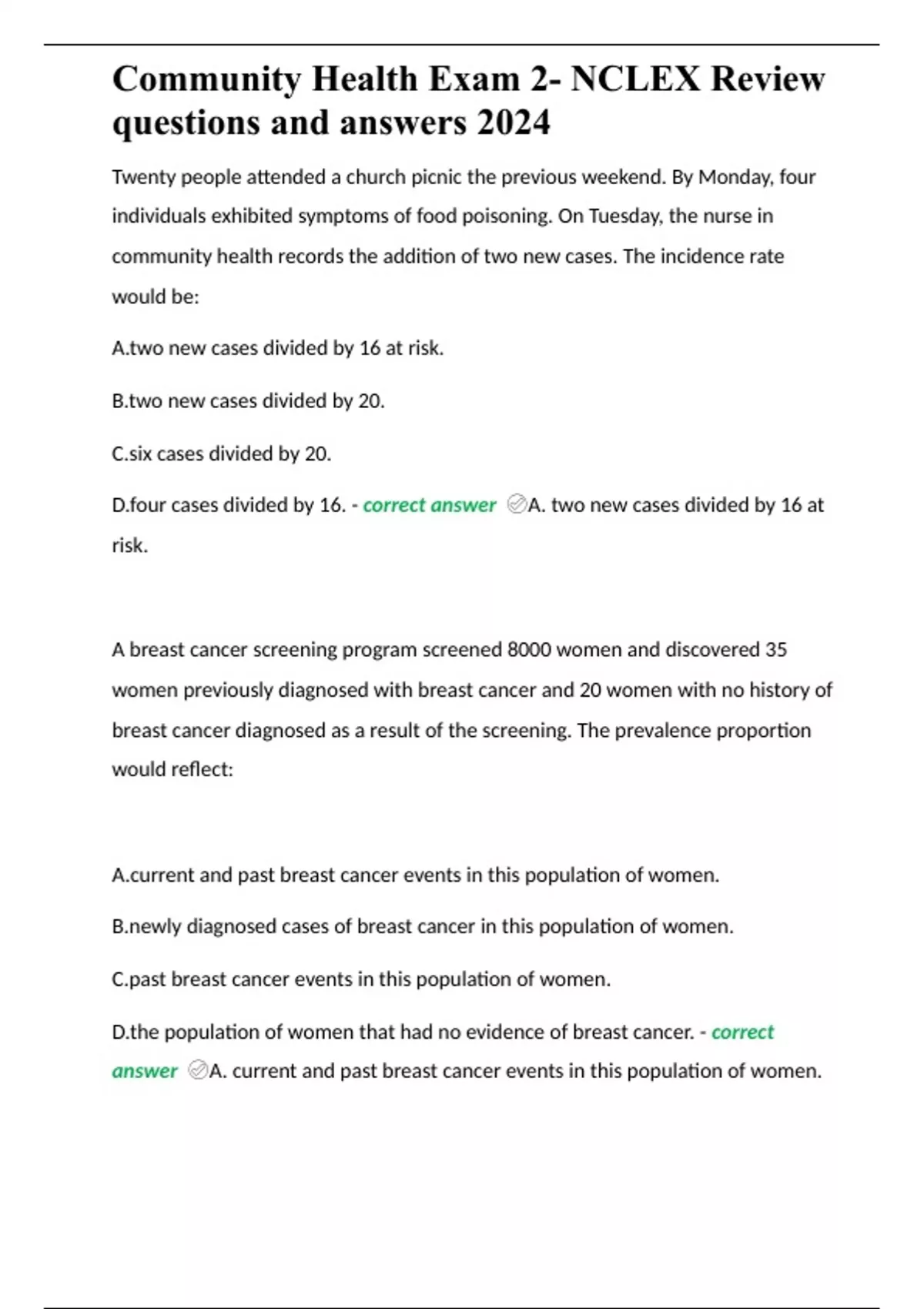 Community Health Exam 2- NCLEX Review questions and answers 2024