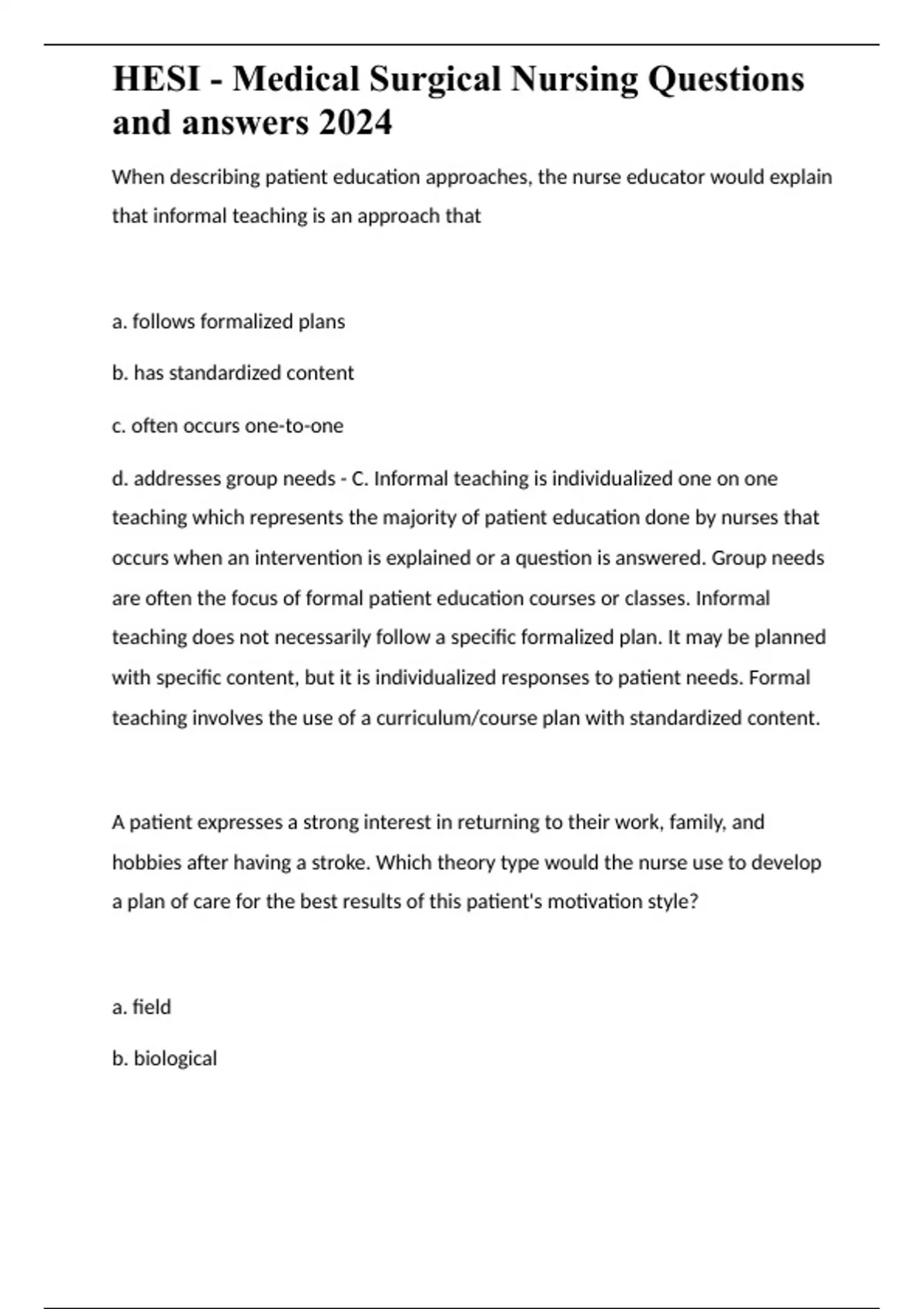 2023-24 Med-Surg HESI Practice Questions and answers exam