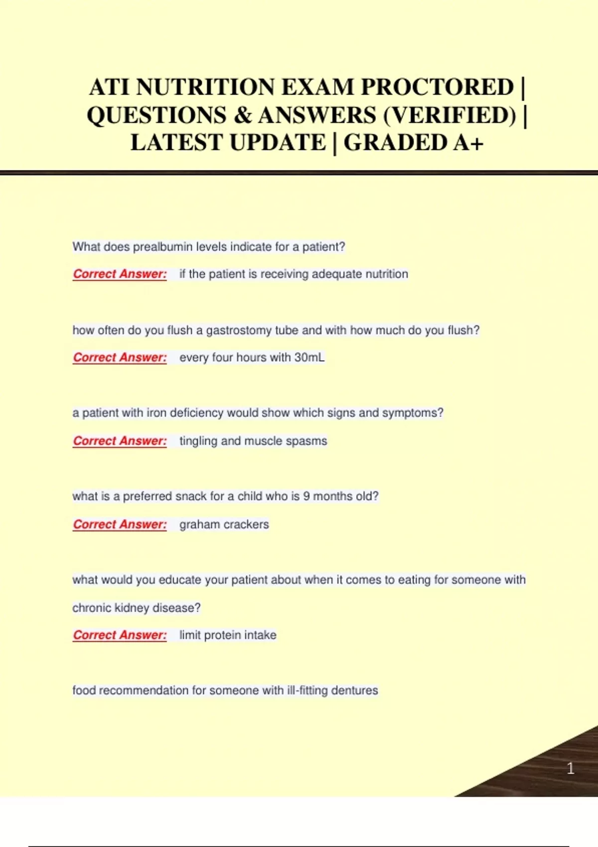 ATI NUTRITION PROCTORED EXAMS PACK | QUESTIONS & ANSWERS (VERIFIED) | LATEST UPDATE | GRADED A+