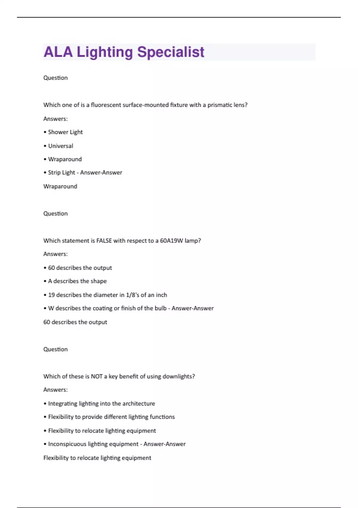 ALA Lighting Specialist Questions And Answers Rated A+ New Update Assured Satisfaction