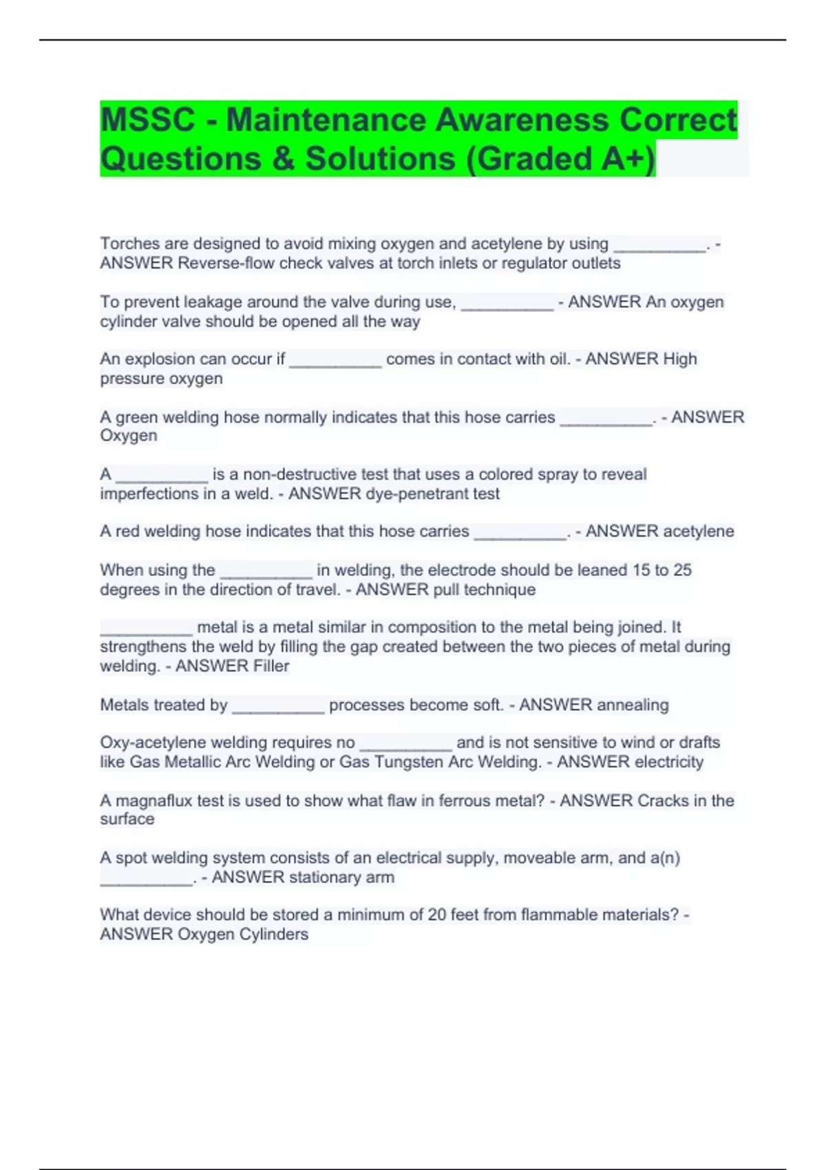 MSSC Maintenance awareness practice test Correctly Answered(MSSC Maintenance awareness practice test Correctly Answered(GRADED A+)FULL PACKAGE DEALMSSC Maintenance awareness practice test Correctly Answered(GRADED A+)FULL PACKAGE DEALMSSC Maintenance awareness practice test Correctly Answered(GRADED A+)FULL PACKAGE DEALMSGRADED A+)FULL PACKAGE DEAL