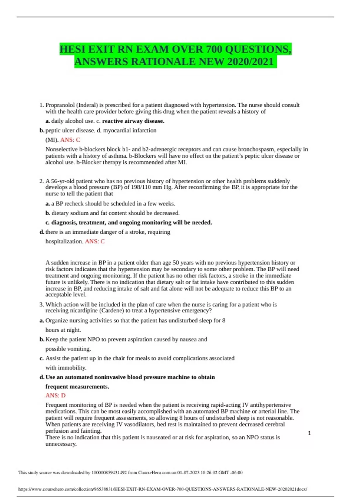 2023 RN HESI EXIT EXAM V1 V2 V3V3 V5 V6 V7 ( V1-V7 LATEST VOLUMES 2023) QUESTIONS WITH CORRECT ANSWERS. A+GUARANTEED