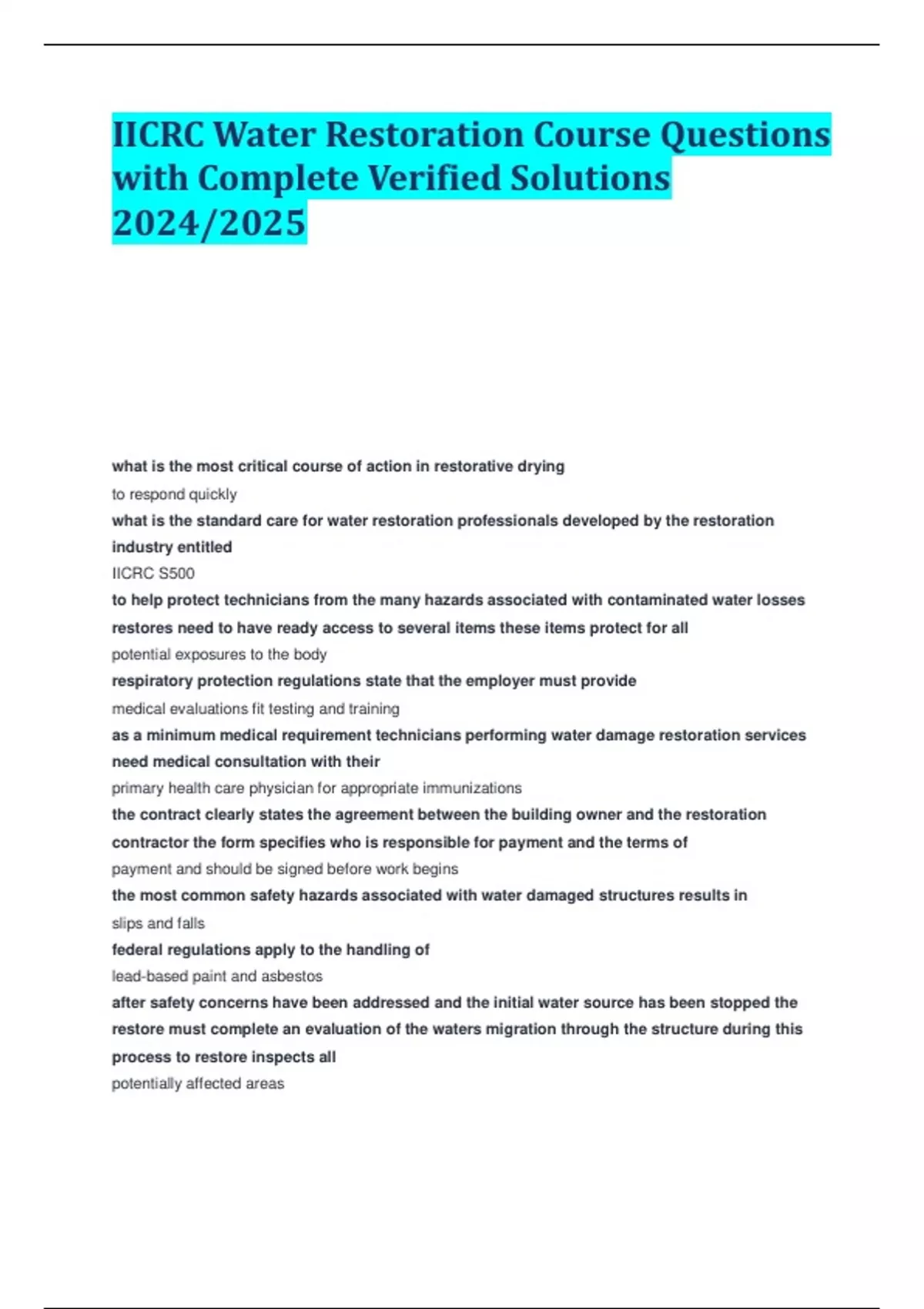IICRC Water Restoration Course Questions with Complete Verified Solutions 2024/2025