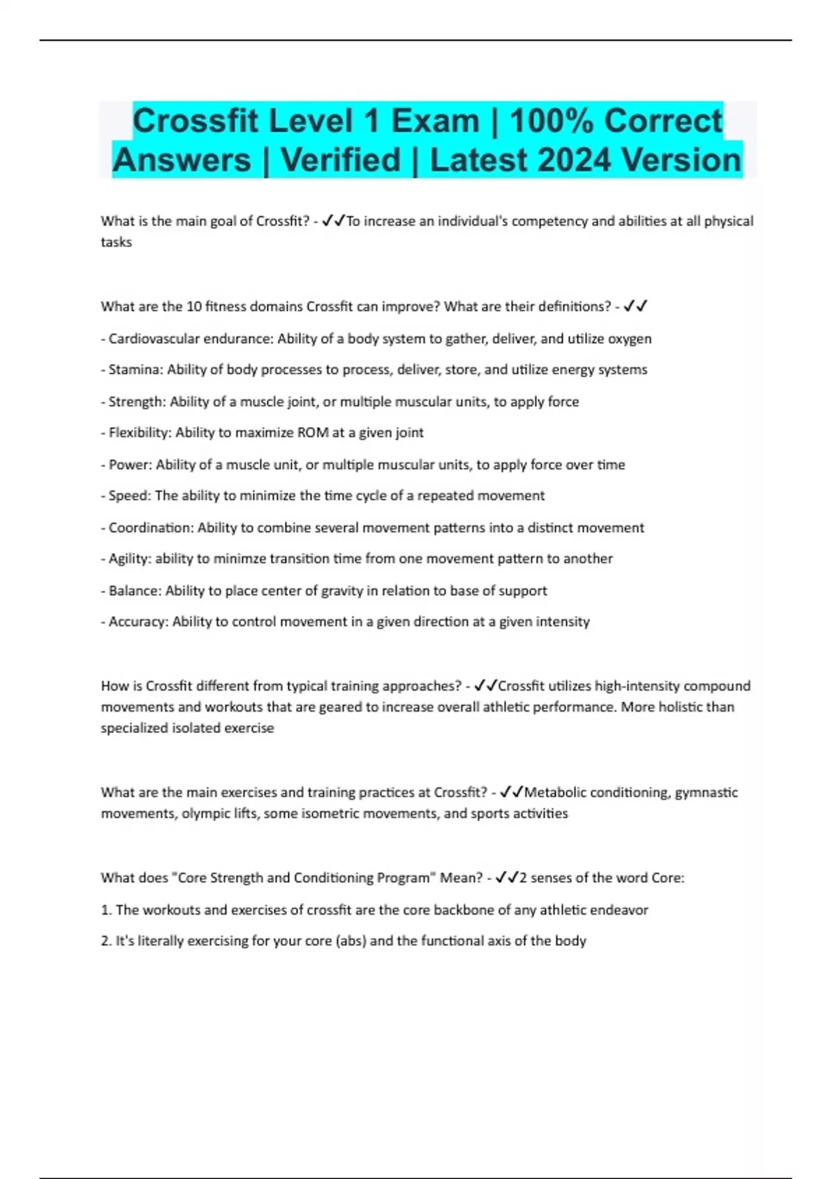 CrossFit Level 1 Exam Prep | 100% Correct Answers | Verified | Latest 2024 Version