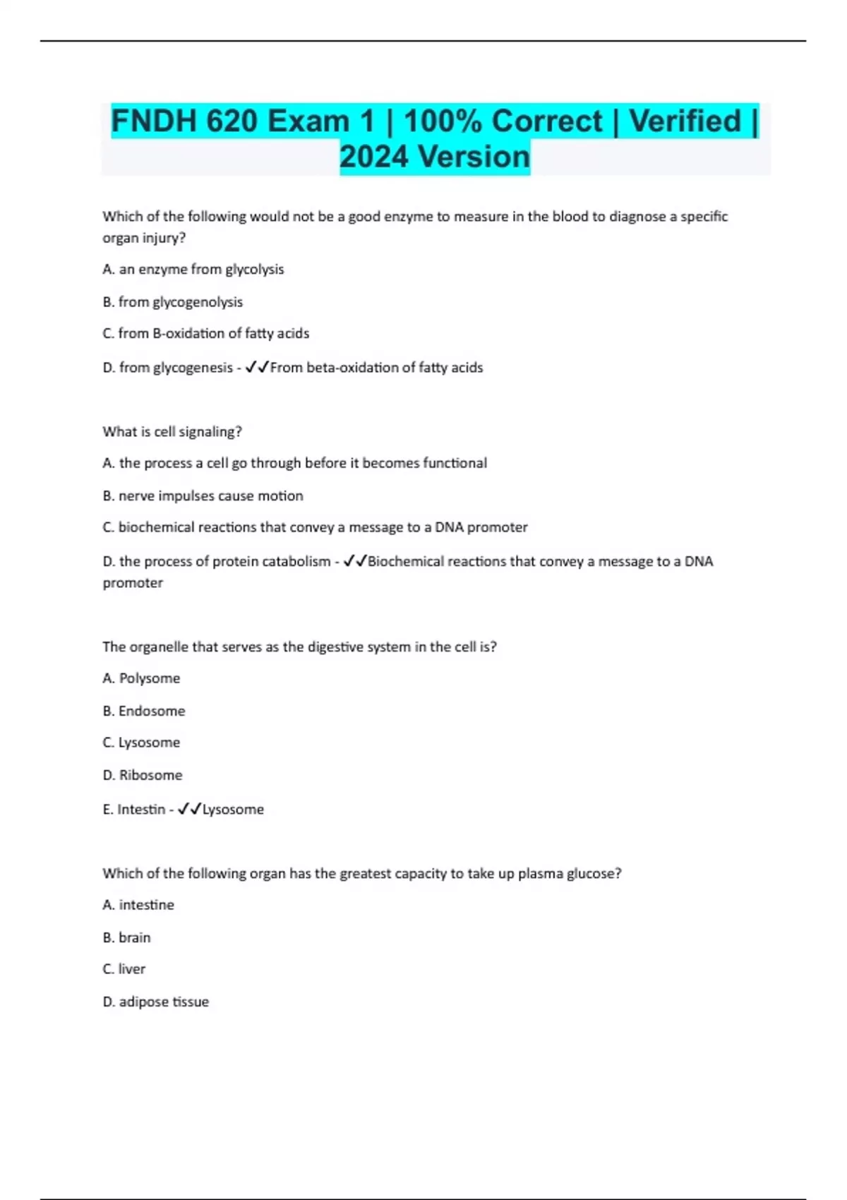 FNDH 620 Final Exam | 100% Correct | Verified | 2024 Version