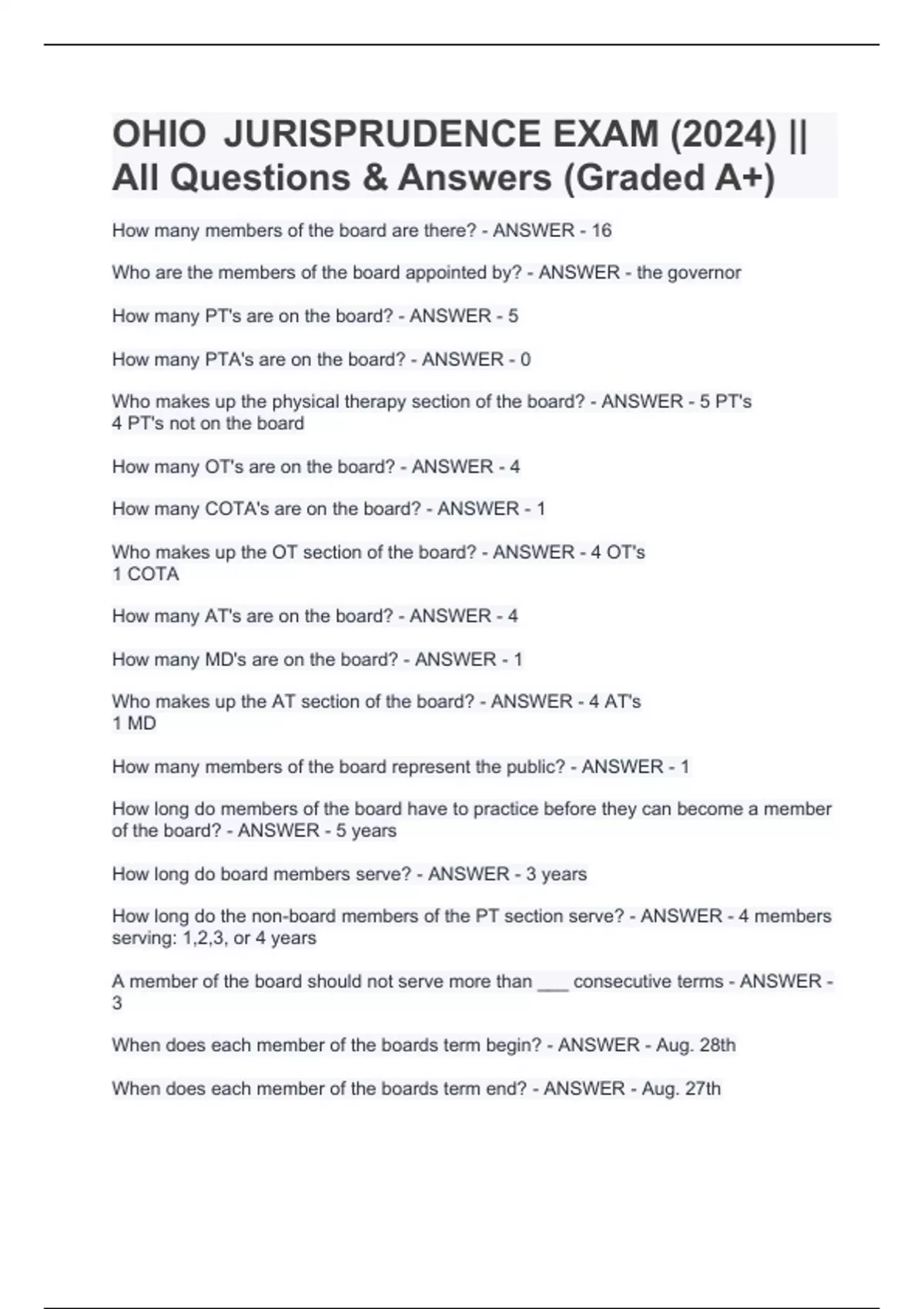 OHIO JURISPRUDENCE EXAM BUNDLE (2024) || All Questions & Answers (Graded A+)OHIO JURISPRUDENCE EXAM BUNDLE (2024) || All Questions & Answers (Graded A+)OHIO JURISPRUDENCE EXAM BUNDLE (2024) || All Questions & Answers (Graded A+)OHIO JURISPRUDENCE EXAM BUNDLE (2024) || All Questions & Answers (Graded A+)