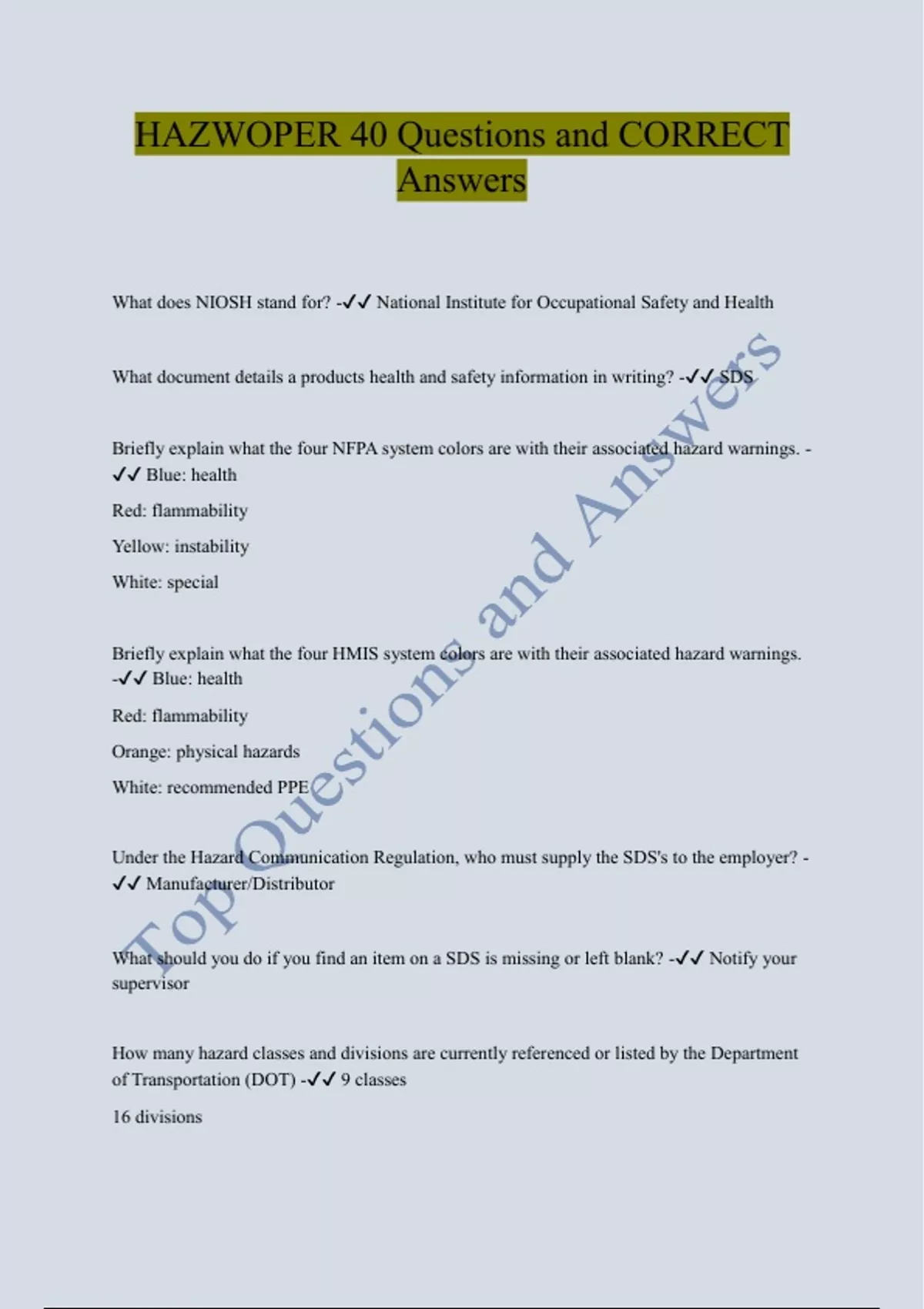 Hazwoper Top Compiled Package Questions and CORRECT Answers