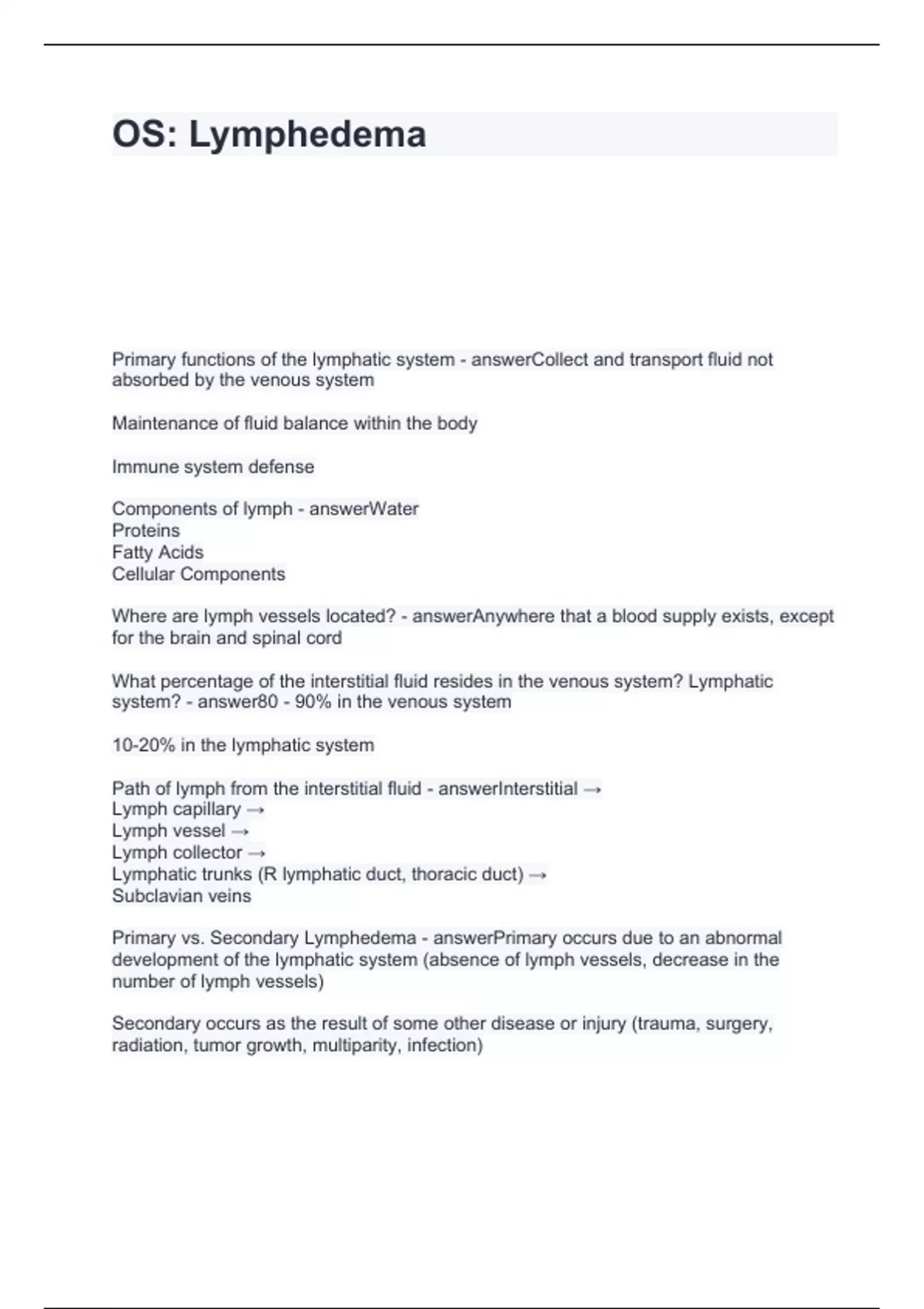 Exam (elaborations) 5 - Lymphedema Questions and Answers 100% correct Exam (elaborations) CM 2 - lymphedema Questions with Accurate Answers 2024 Exam (elaborations) Edema and lymphedema Questions and Answers 100% Correct Exam (elaborations) Lymphedema 1B Questions and Answers 2024 Exam (elaborations) Lymphedema 101 by Klose Training Questi