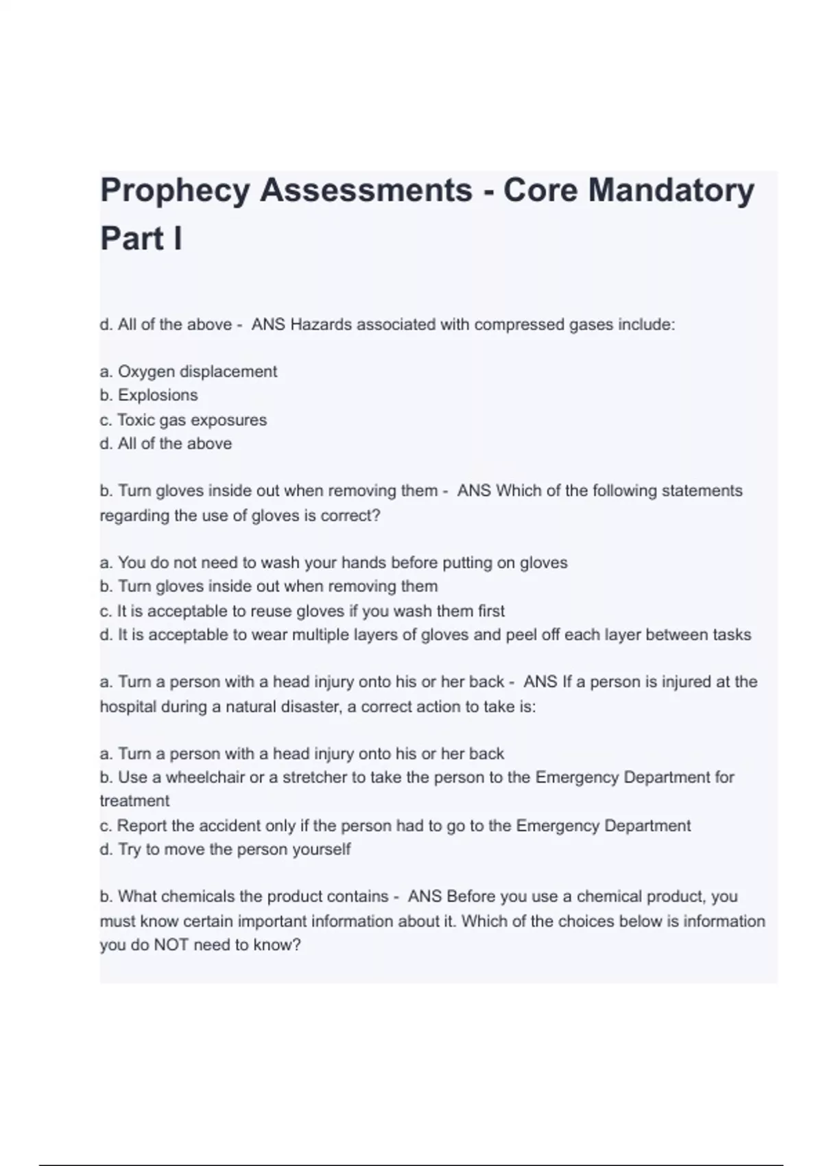 Prophecy Assessments - Core Mandatory Part II Test Questions and Complete Solutions Latest Updates (A+ GRADED 100% VERIFIED)