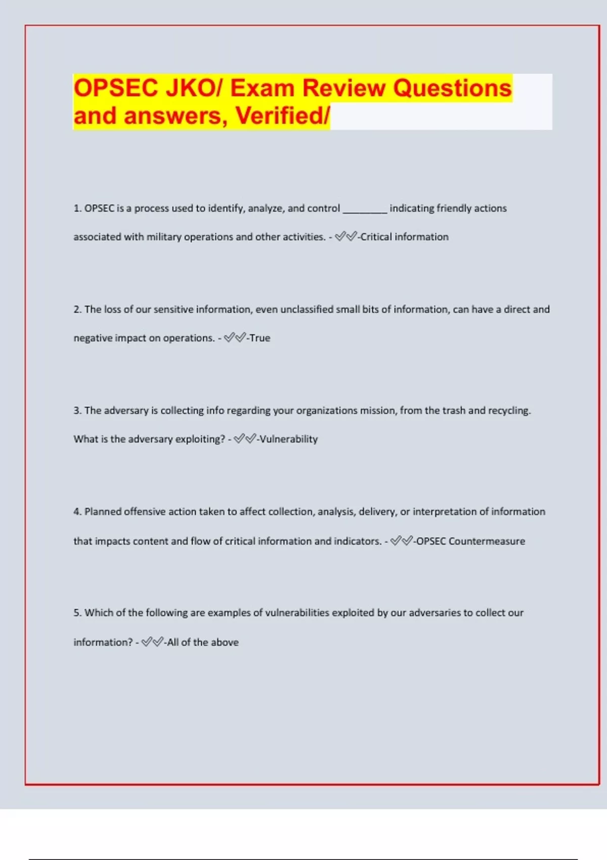 OPSEC Exam Compilations, rated A+