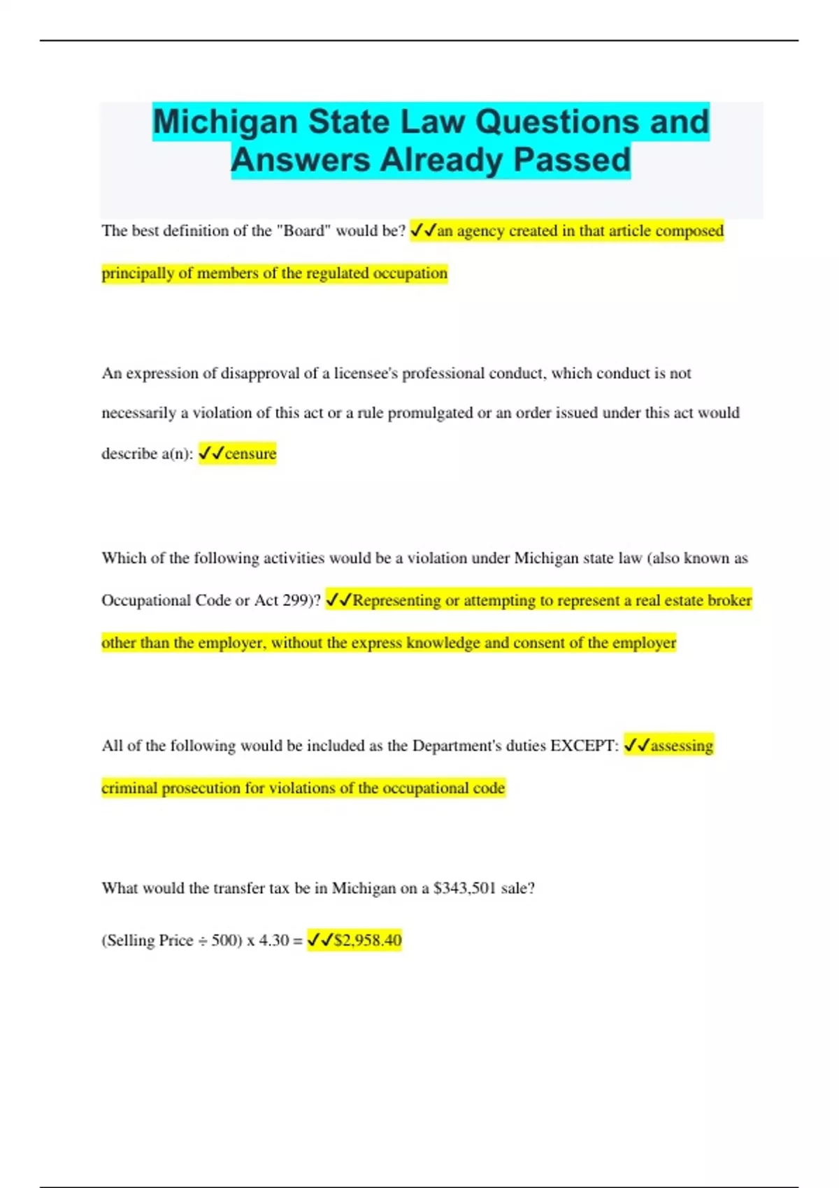 Michigan Laws and Rules Bundled Exams Questions and Answers (2024/2025) Already Passed