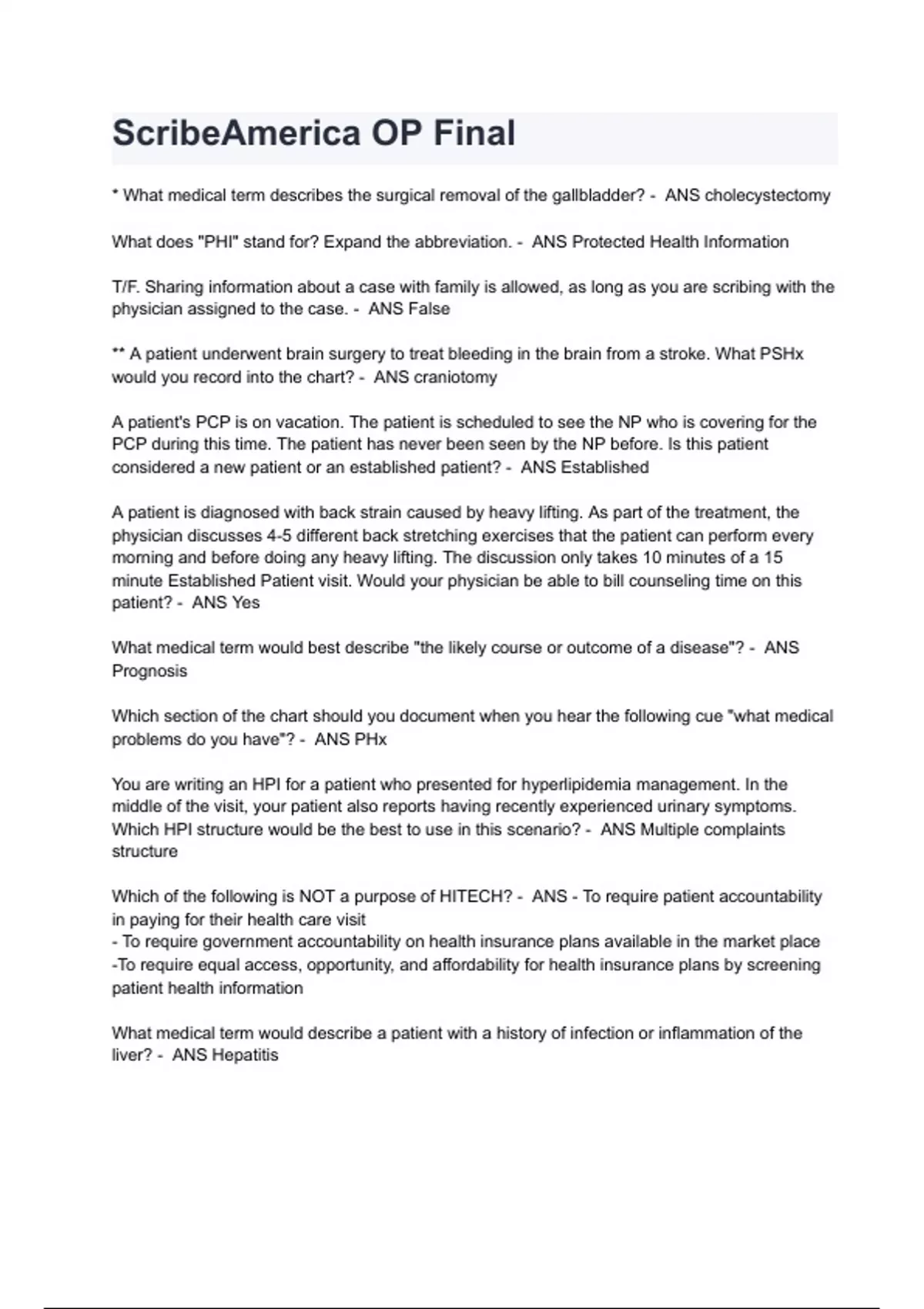 Scribe America Final BUNDLED Exams with 100% correct Questions & Answers 2024 ( A+ GRADED 100% VERIFIED)!!!!!ALL BUNDLED HERE!!!