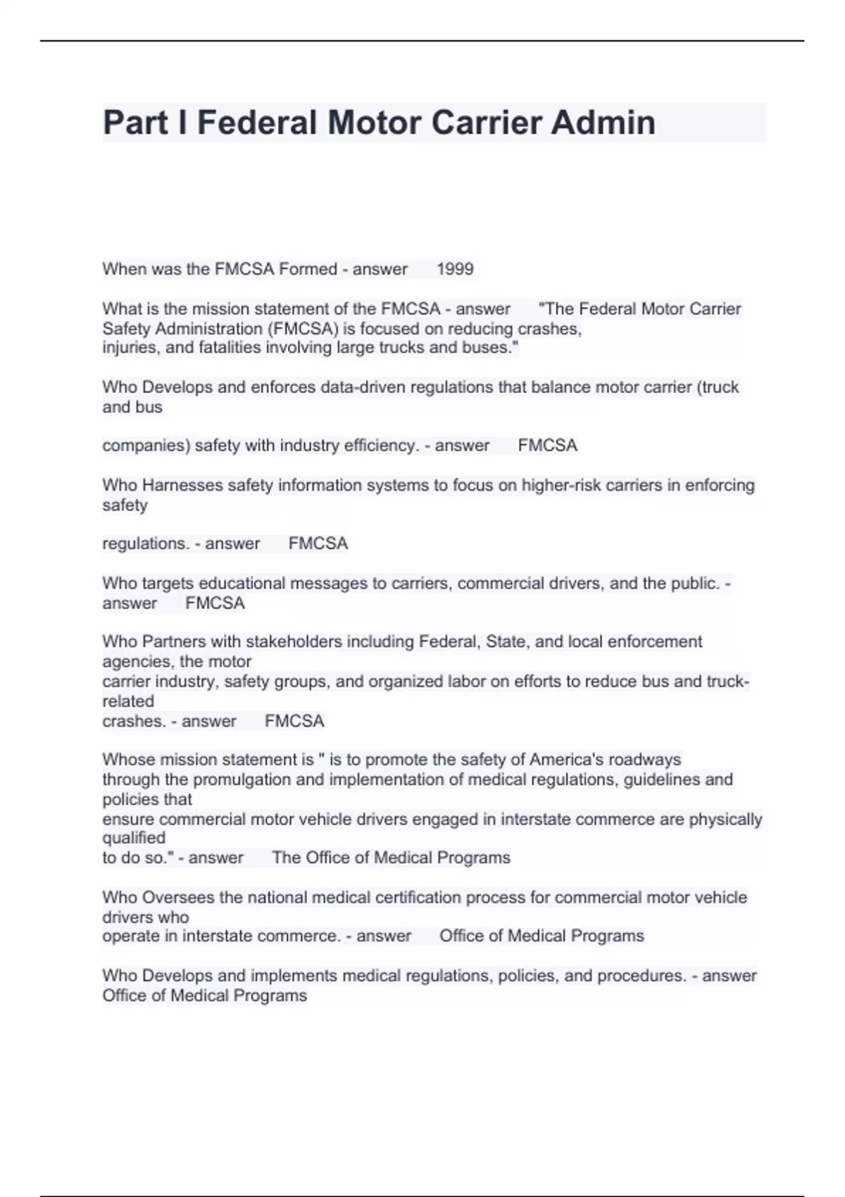 FMCSA EXAM BUNDLE GRADED A+ 2024