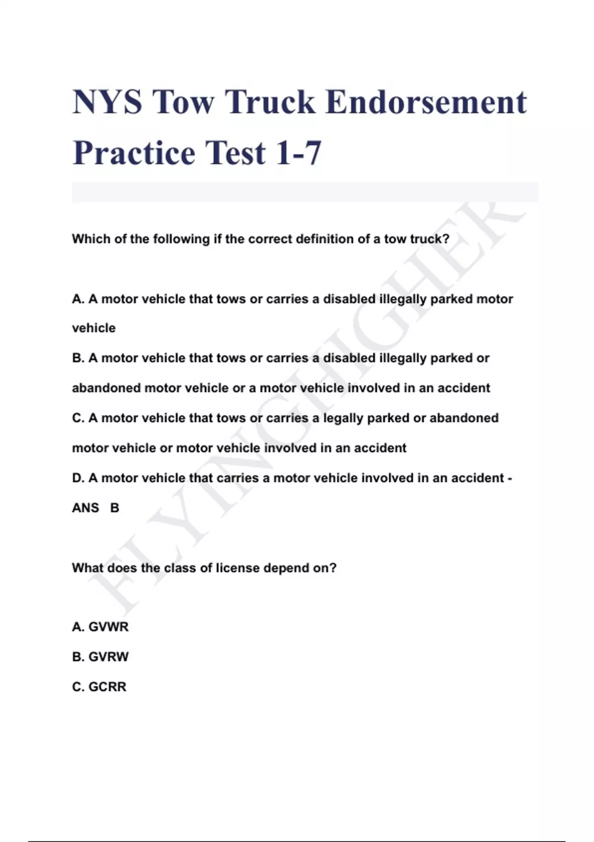NYS Tow Truck Endorsement EXAM BUNDLE|| ACTUAL EXAM|| FULL PACKAGED SOLUTION || LATEST 2024 ( A+ GRADED 100% VERIFIED)