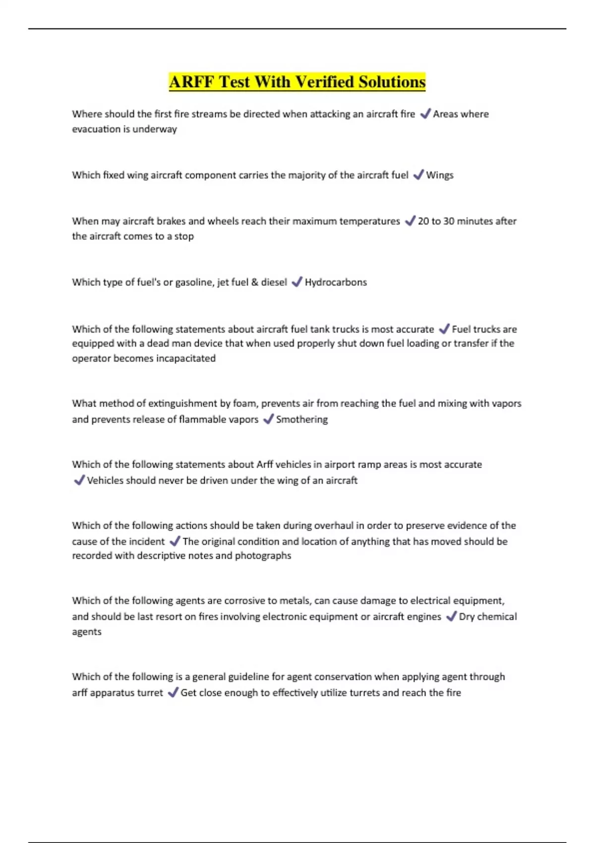 ARFF Package With Verified Solutions Rated A+ 2024