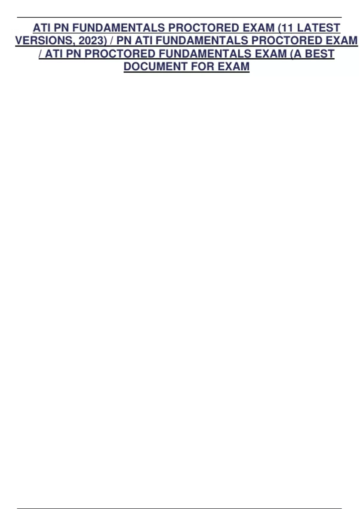 ATI PN FUNDAMENTALS PROCTORED EXAM (11 LATEST VERSIONS, 2023) / PN ATI FUNDAMENTALS PROCTORED EXAM / ATI PN PROCTORED FUNDAMENTALS EXAM (A BEST DOCUMENT FOR EXAM