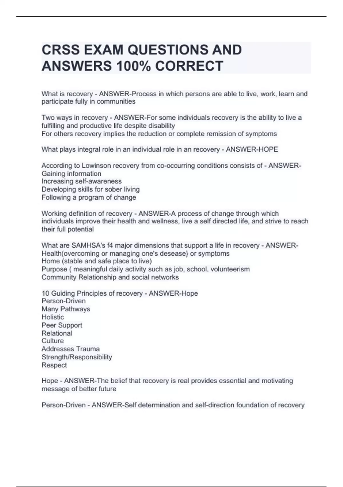 CRSS EXAM 2024 BUNDLE (COMPLETE PACKAGE) QUESTIONS AND ANSWERS 100% CORRECT