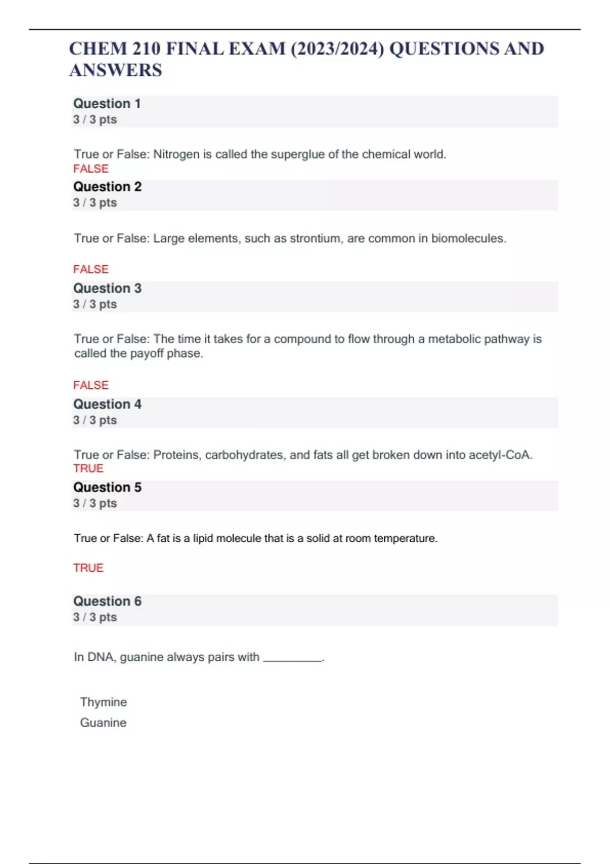 CHEM 210 FINAL EXAM () QUESTIONS AND ANSWERS