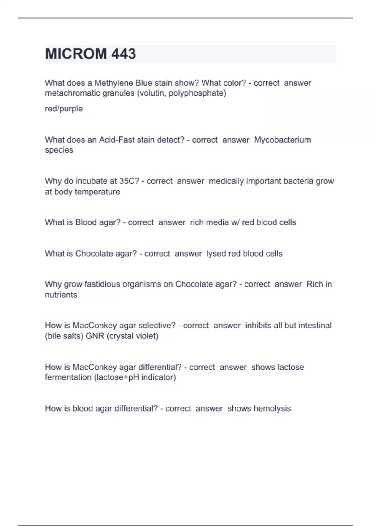 BIOL 443 Test 3 Question and answers rated A+ 2024/2025 Exam (elaborations) BIOL 443 Questions with complete solution 2024/2025 Exam (elaborations) MIC 443 Exam 1 Question and answers correctly solved 2024/2025 Exam (elaborations) Micro 443 Question and answers 2024/2025 verified to pass Exam (elaborations) Micro 443 Question and answers al
