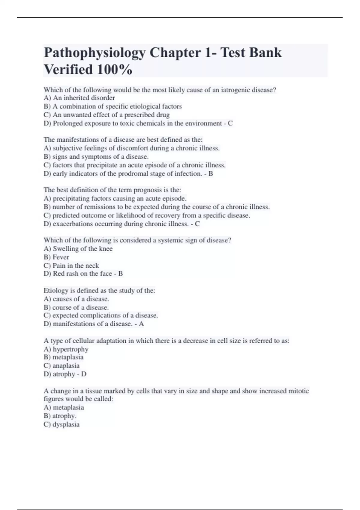 Pathophysiology Test Bank Exam Question and Answers Package Deal