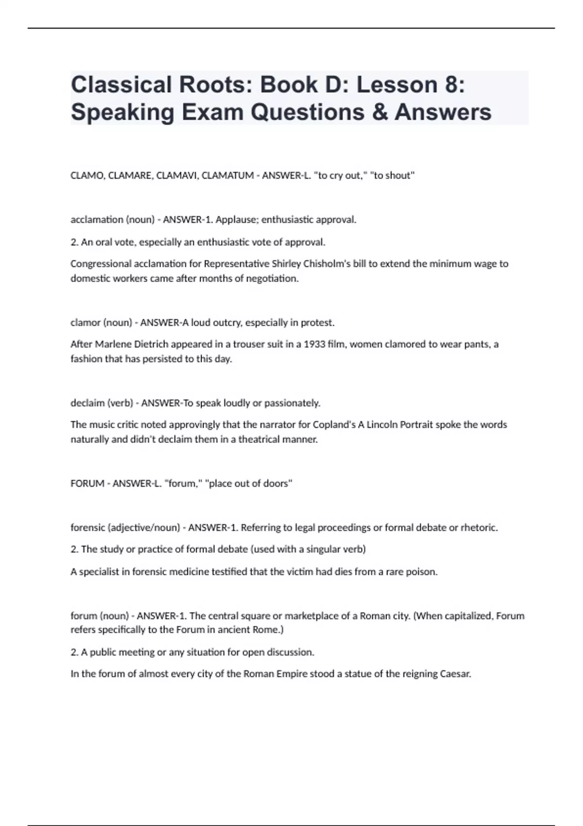 Classical Roots: Book D: Lesson 8: Speaking Exam Questions & Answers