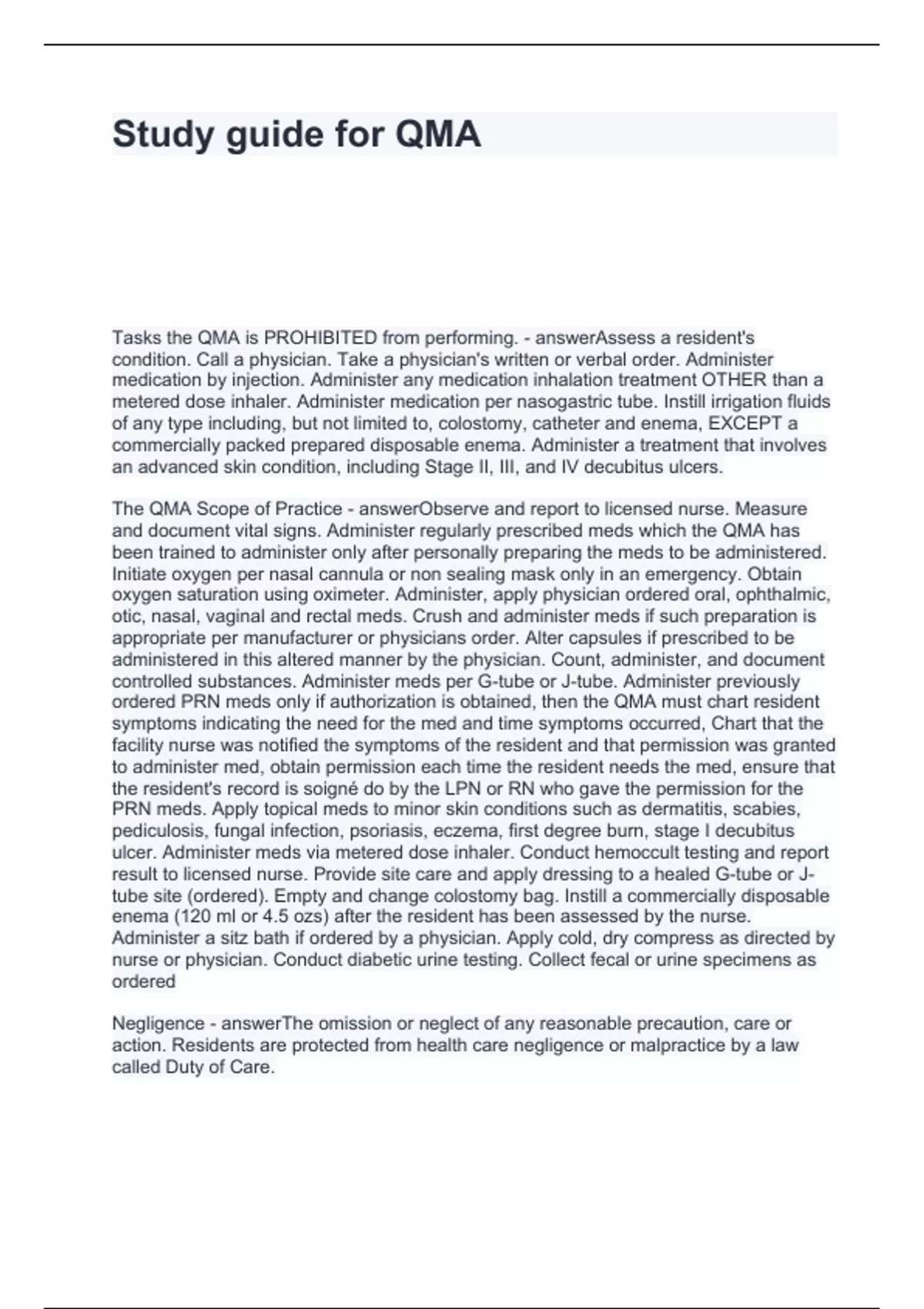 QMA EXAM TEST COMPILATION BUNDLE 2024
