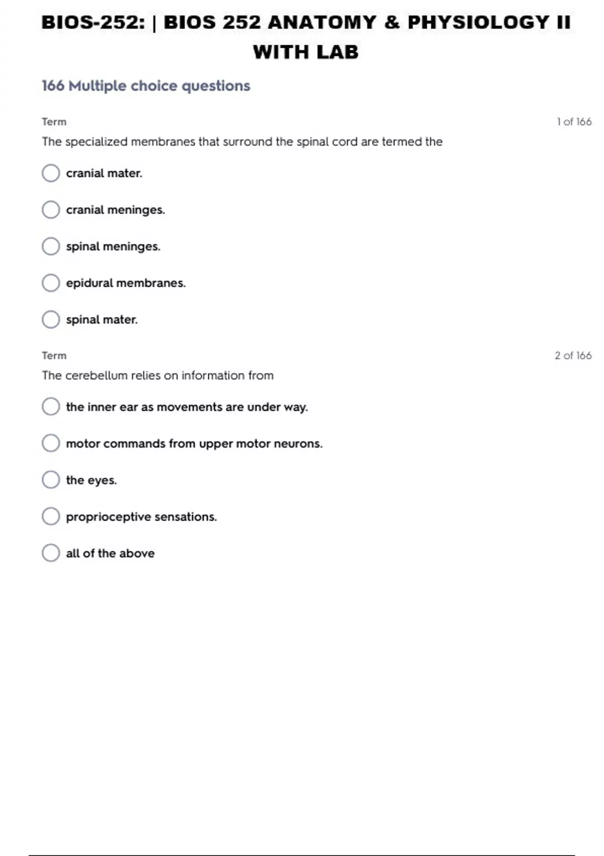 COMPREHENSIVE BUNDLE PACK /PACKAGE DEAL FOR BIOS-252: Anatomy & Physiology II with Lab {Self-Test 1-50}