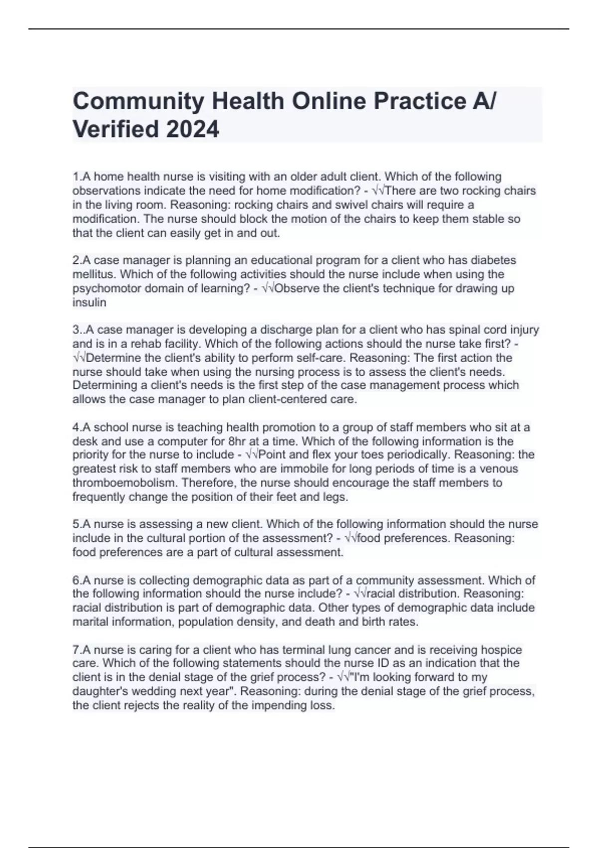 Community Health Online Practice A And B