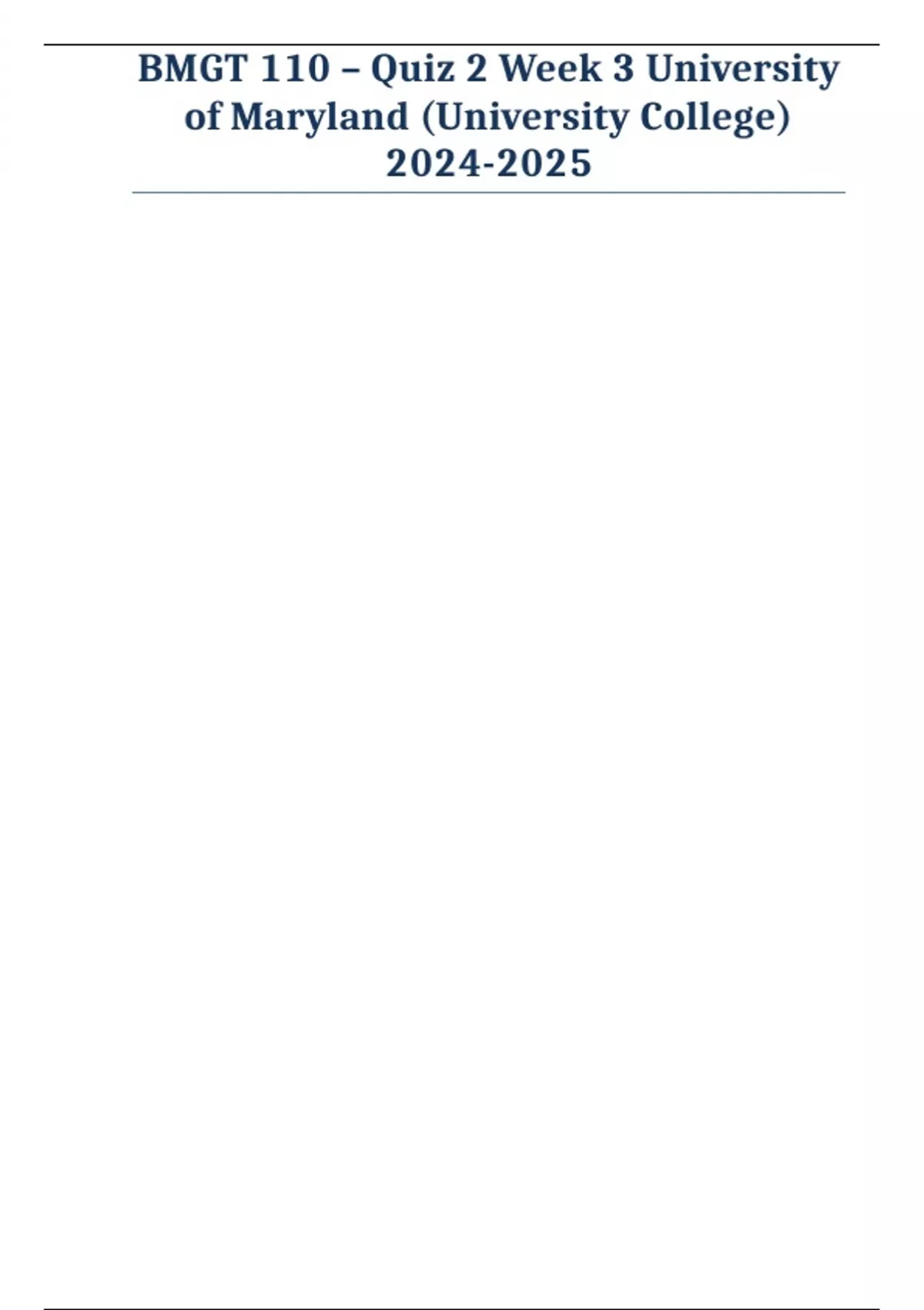 BMGT 110 Quiz 2 Week 3,Quiz 1 Week 2,Quiz 4 Week 5,quiz 6 Unit 3 Milestone complete University of Maryland, University College
