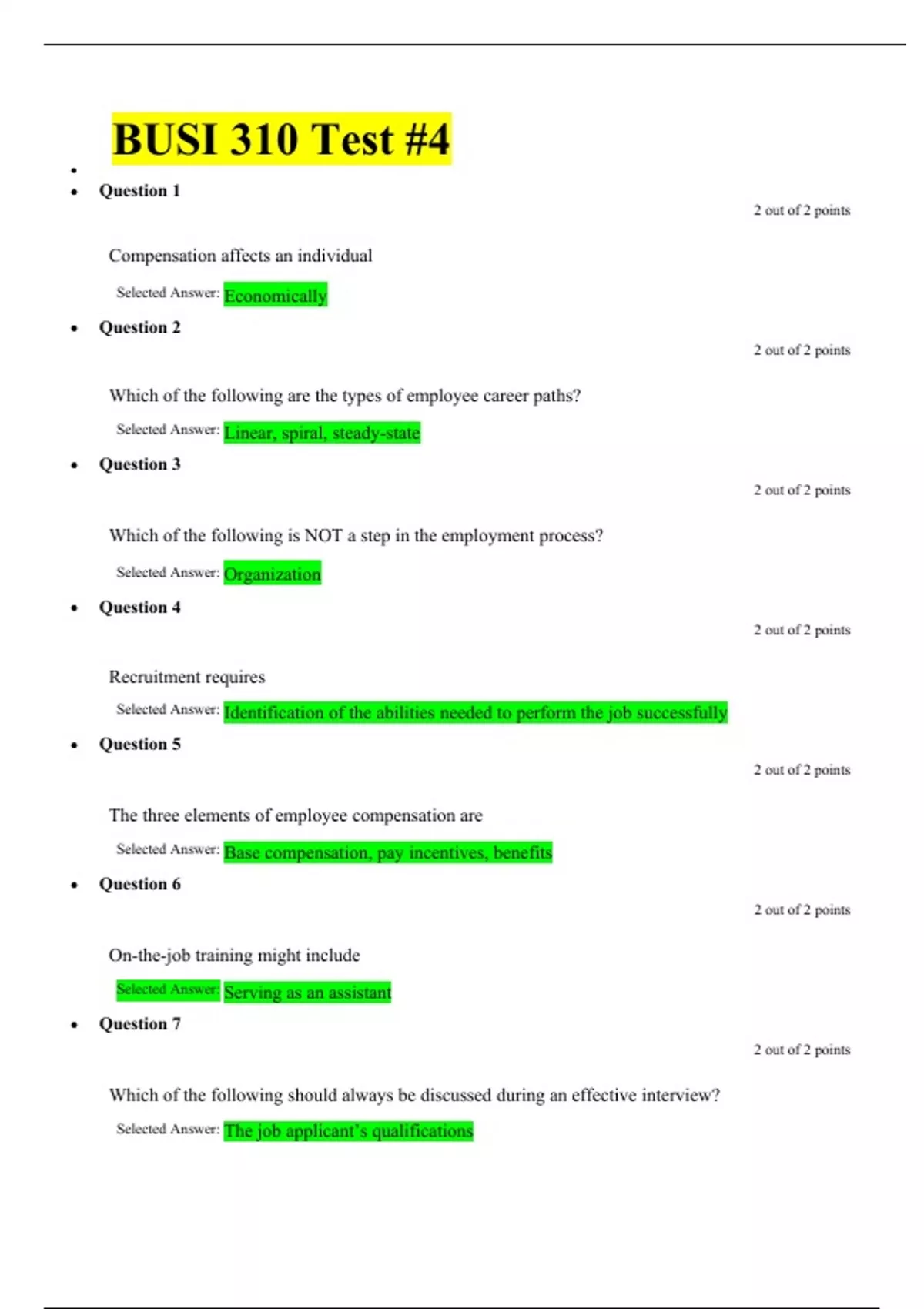 BUSI 310 Test 1 (2 Versions), Test 2, Test 3, Test 4, BUSI 310: PRINCIPLES OF MANAGEMENT, Liberty University.