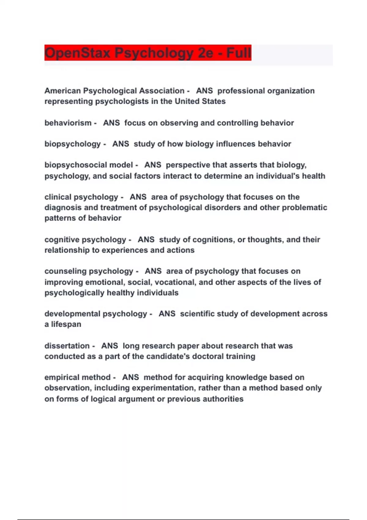 OpenStax Psychology 2e exam guide with the latest updated questions and answers guaranteed pass