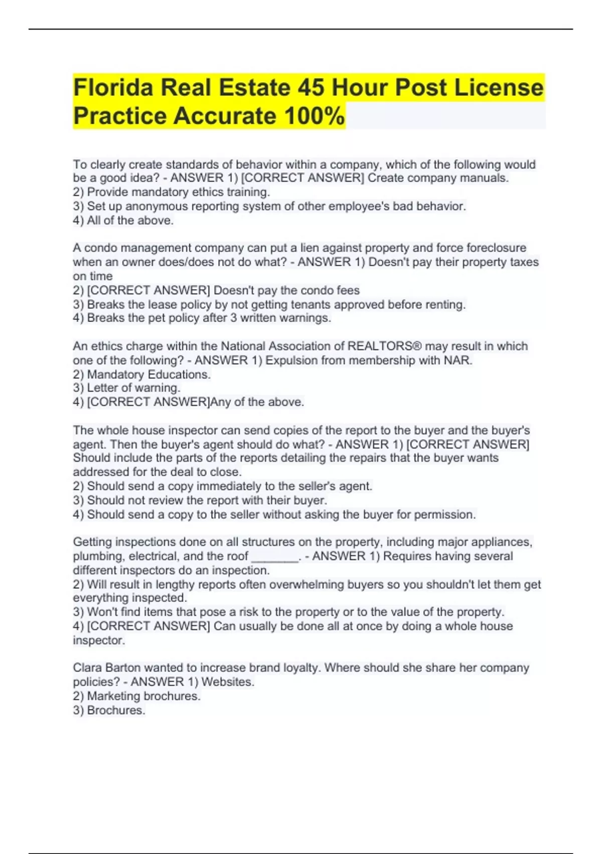45 Post Licensing Course Correct Questions and Answers