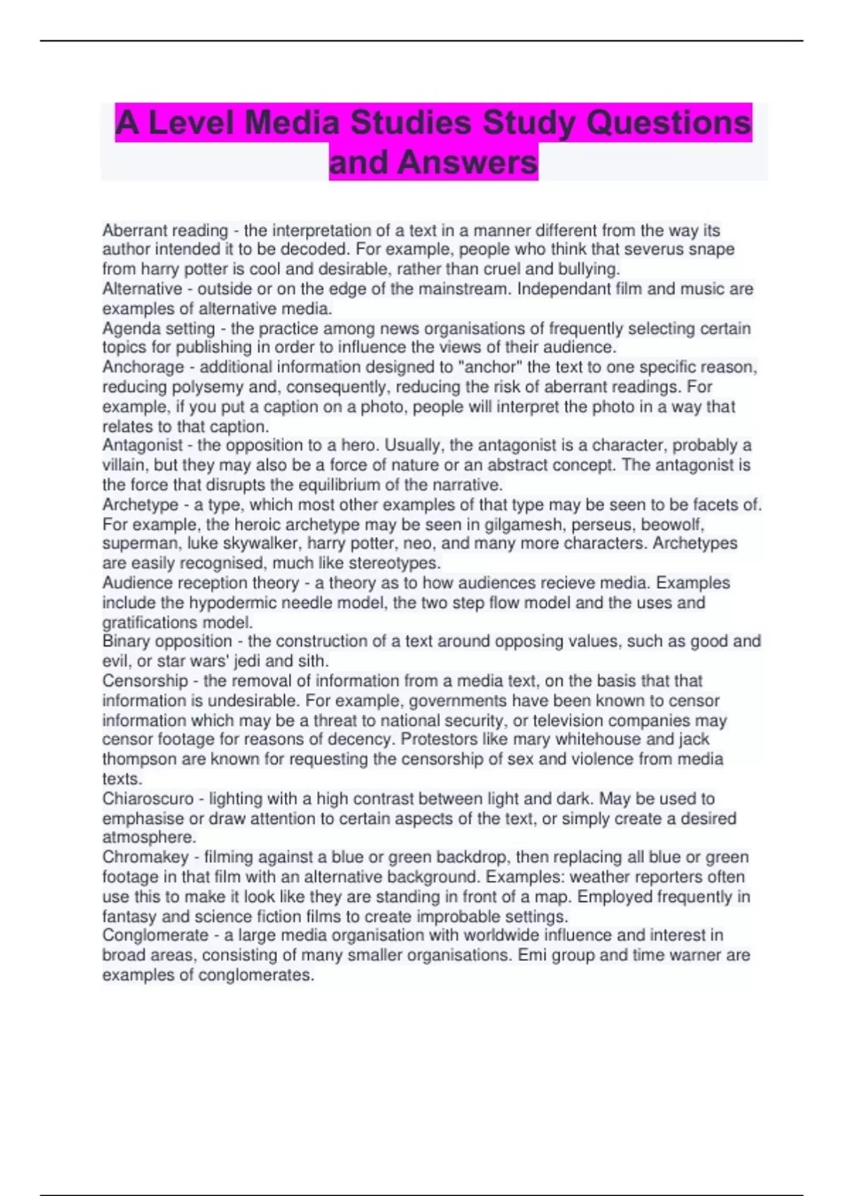 This bundle is crafted to aid students in mastering essential concepts, theories, and analysis techniques required for success in their media studies examinations.
