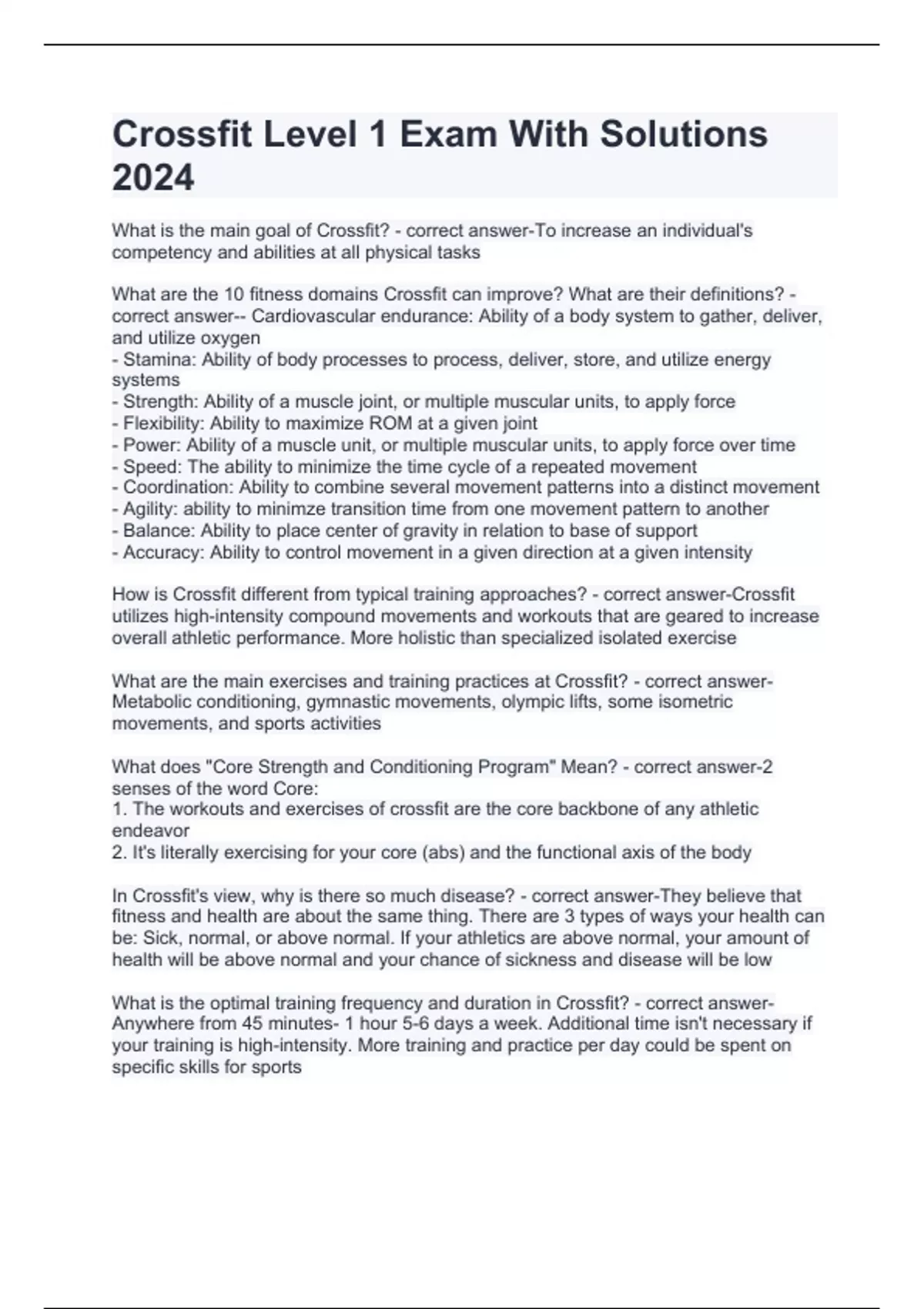 package deal for Crossfit L1 TEST STUDY Exam With Complete Solutions 2024