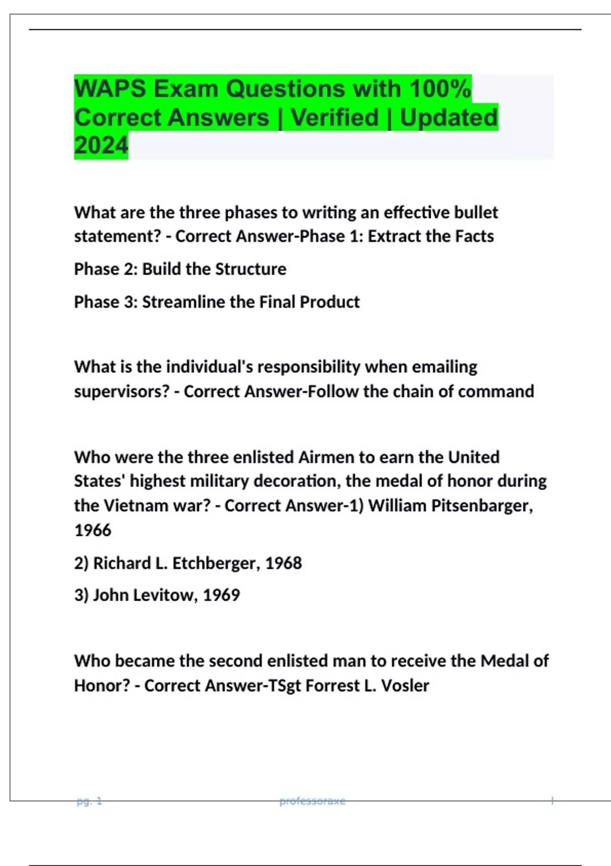 WAPS 2024/2025 PFE Questions with 100% Correct Answers | Verified | Updated WAPS Exam Questions with 100% Correct Answers | Verified | Updated 2024 WAPS TEST (PDG) EXAM WITH 100% CORRECT ANSWERS 2024 WAPS Ssgt Exam Questions With 100% Correct Answers 2024 WAPS SSGT EXAM QUESTIONS AND ANSWERS 100% VERIFIED | LATEST UPDATE 2024