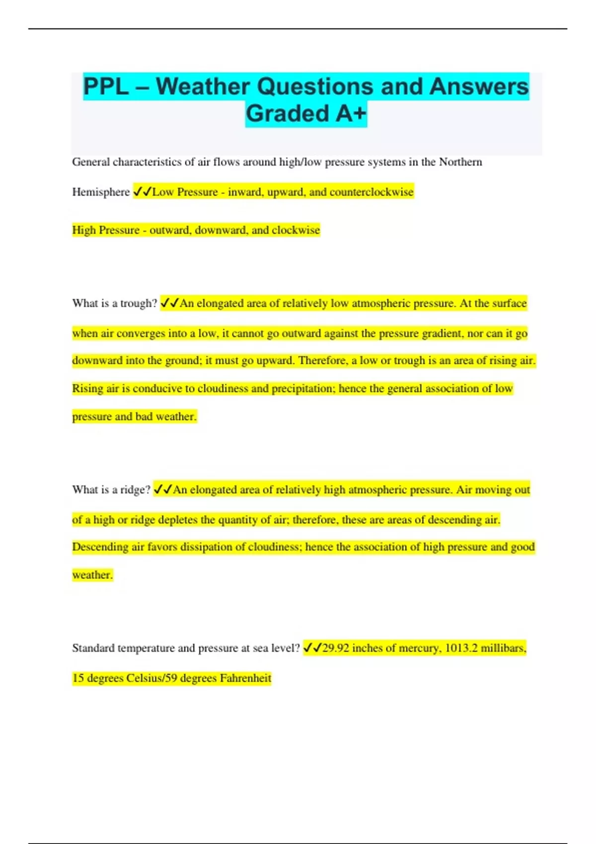PPL – Weather Questions and Answers Graded A+