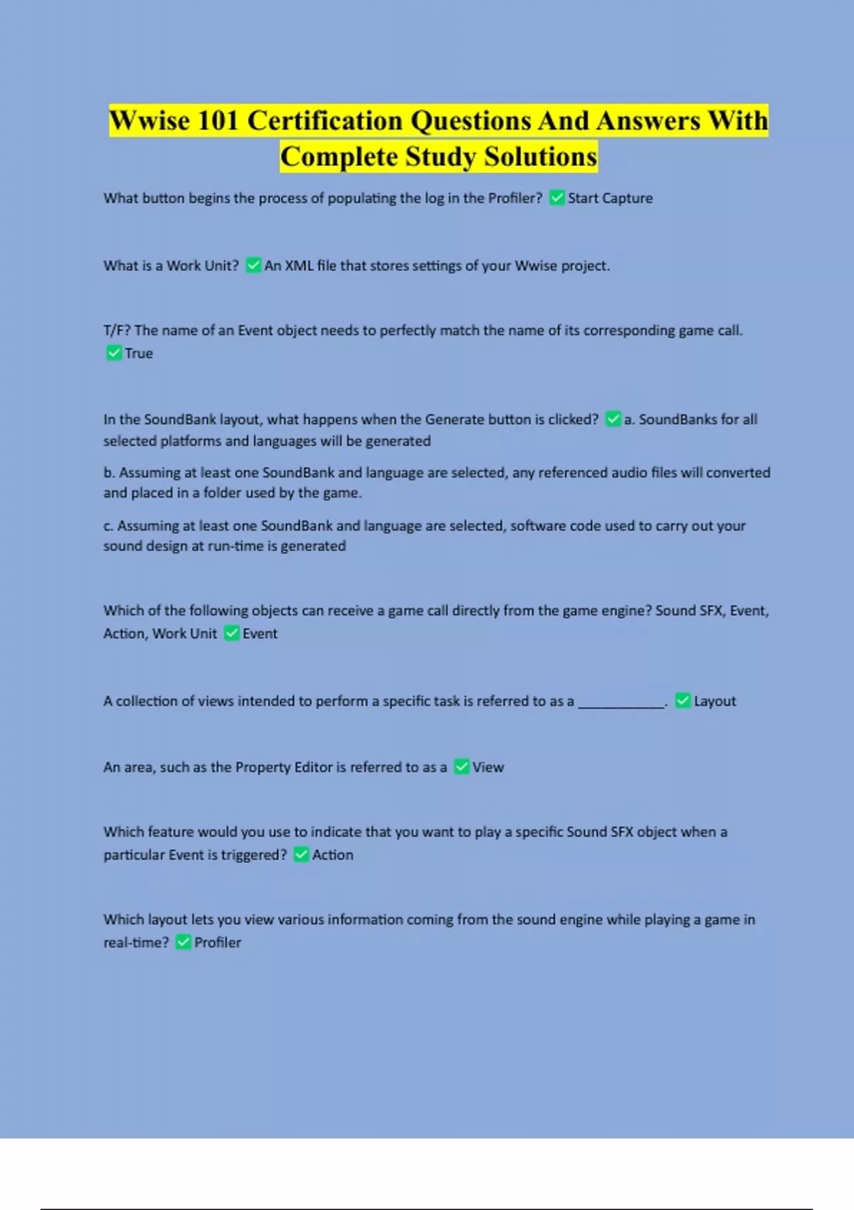 WWISE Package Deal With Questions And Answers Graded A+ WWISE 101 Revision Questions And Answers 2024 Updates Wwise-101 Lesson 1 Questions And Answers With Latest Quiz