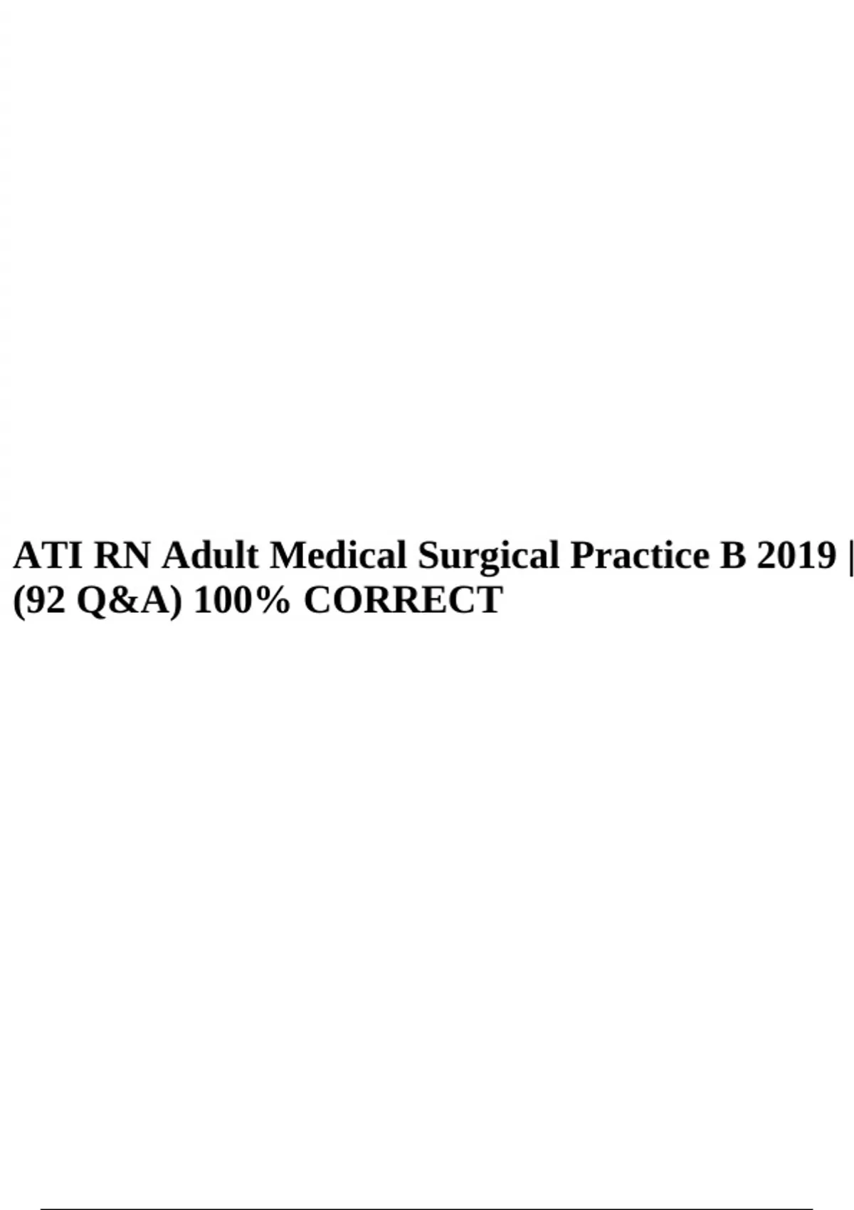 ATI RN ADULT MEDICAL SURGICAL PROCTORED EXAM 2024 UPDATED, ATI RN Adult Medical Surgical Practice B 2023 Questions and Correct Answers, ATI RN Adult Medical Surgical Online Practice 2019 B 100%Correct Answers & ATI RN Adult Medical Surgical Practice B 201