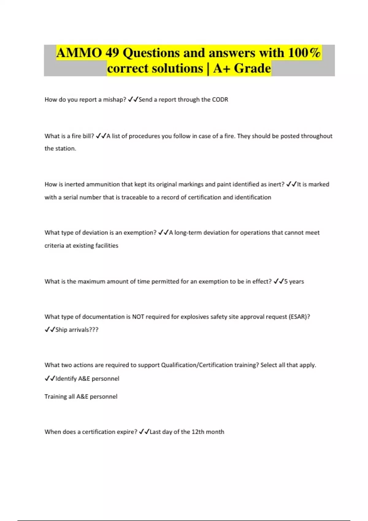 Ammo 49 Bundled Exams| Questions with 100% Correct Answers | Updated 2024 | Guaranteed A+