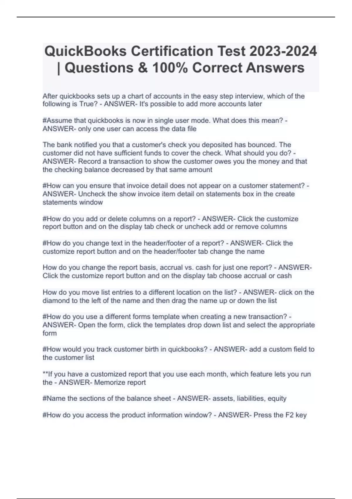 QuickBooks Certification Test | Questions & 100% Correct Answers