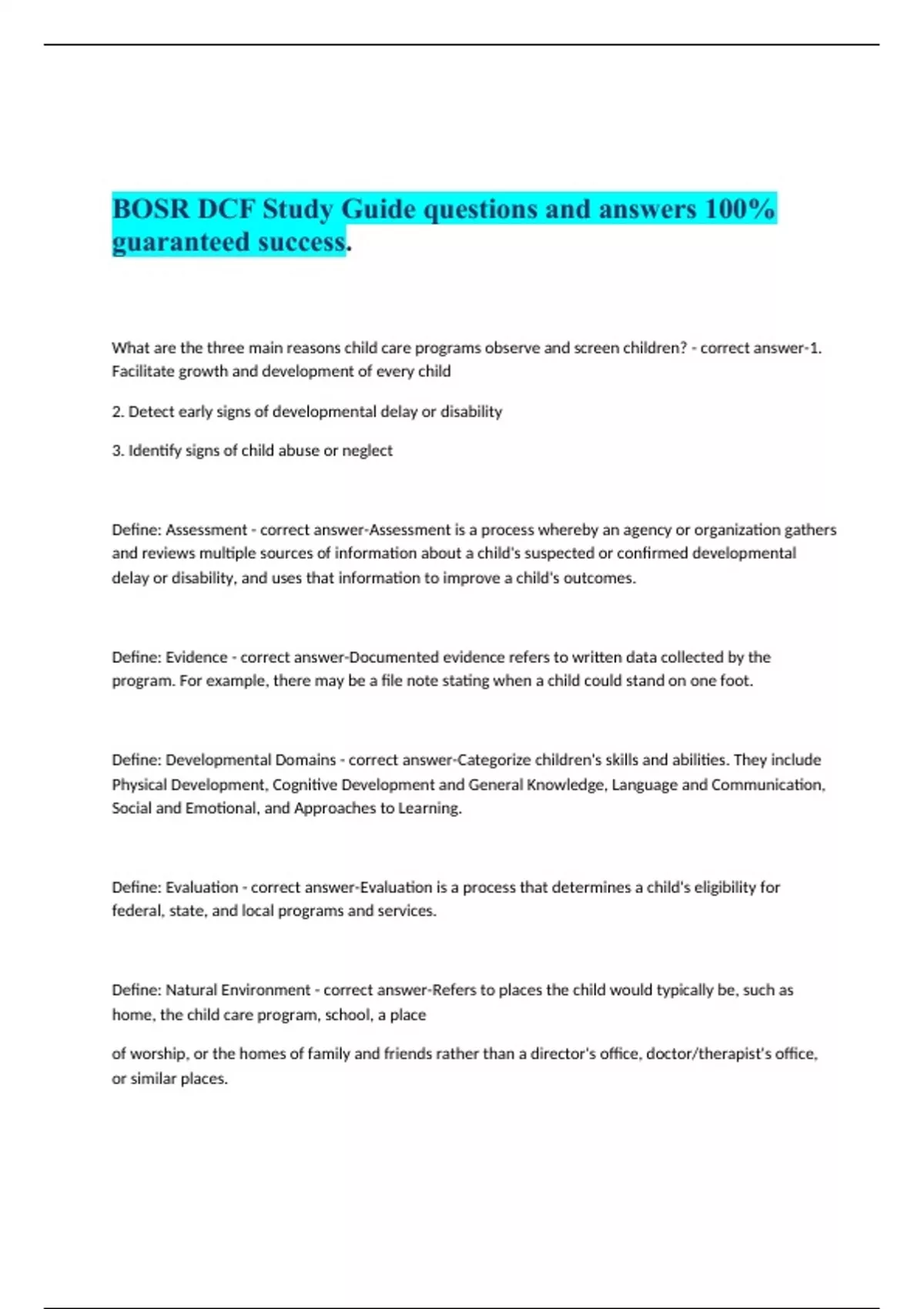 DCF behavioral observation and screening (BOAS) questions and answers well illustrated.DCF Study Guide: Behavior Observation and Screening questions and answers latest top score.(BOSR) Behavioral Observation and Screening questions and answers.FL DCF Child Care Behavioral Observation and Screening (BOSR) 2019 questions and answers latest top