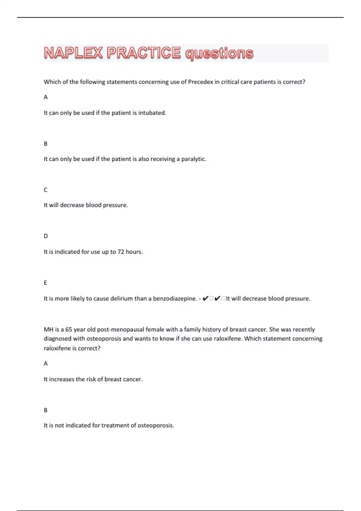 NAPLEX PRACTICE 49 questions And Answers|28 Pages