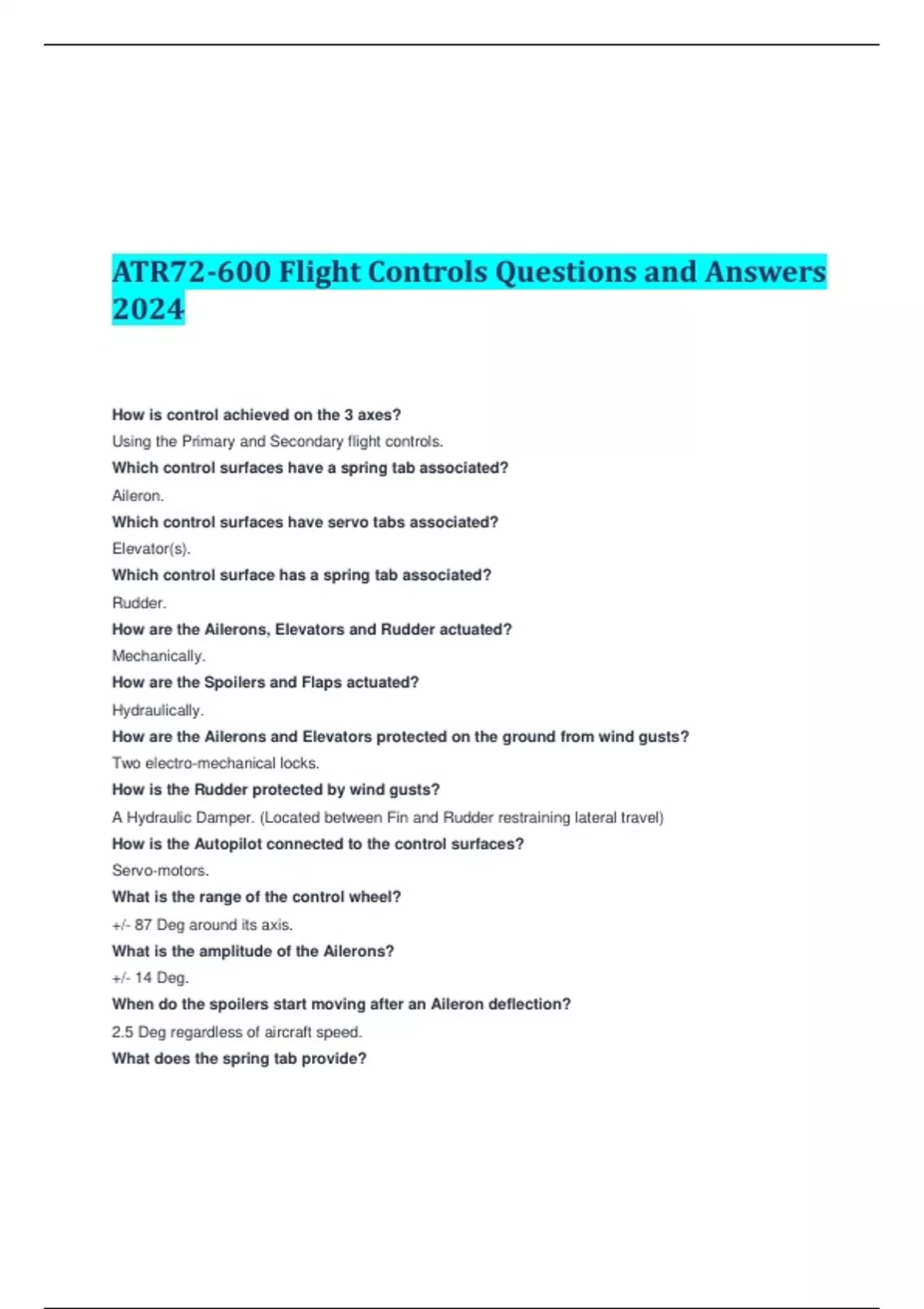 ATR 72 EXAMINATION BUNDLE SET WITH COMPLETE VERIFIED SOLUTIONS