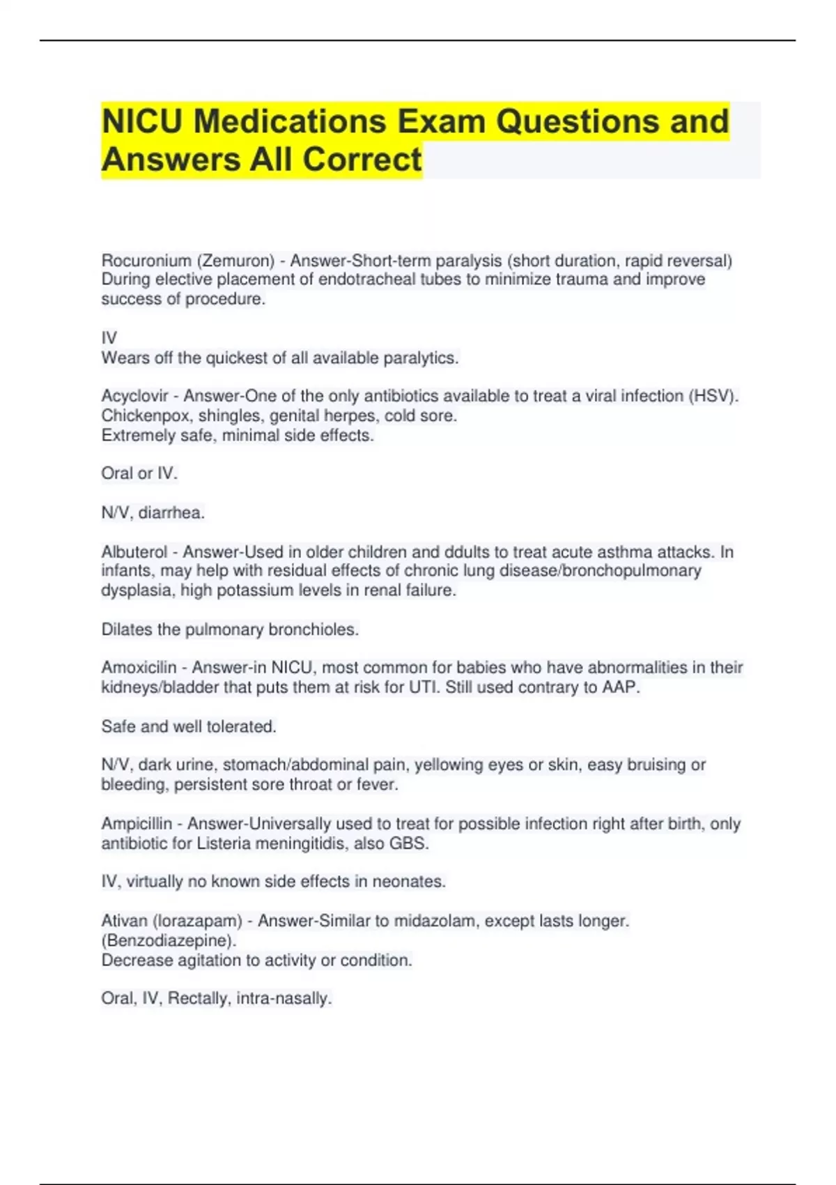 NICU Exam Questions with All Correct Answers 2 Exam (elaborations) NICU RN A v1 Exam Questions with Correct Answers 3 Exam (elaborations) NICU Quiz Test Questions with Correct Answers 4 Exam (elaborations) CCRN NICU Exam Questions with Correct Answers 5 Exam (elaborations) NICU Practice Test Questions with Correct Answers 6 Exam (elaborations)