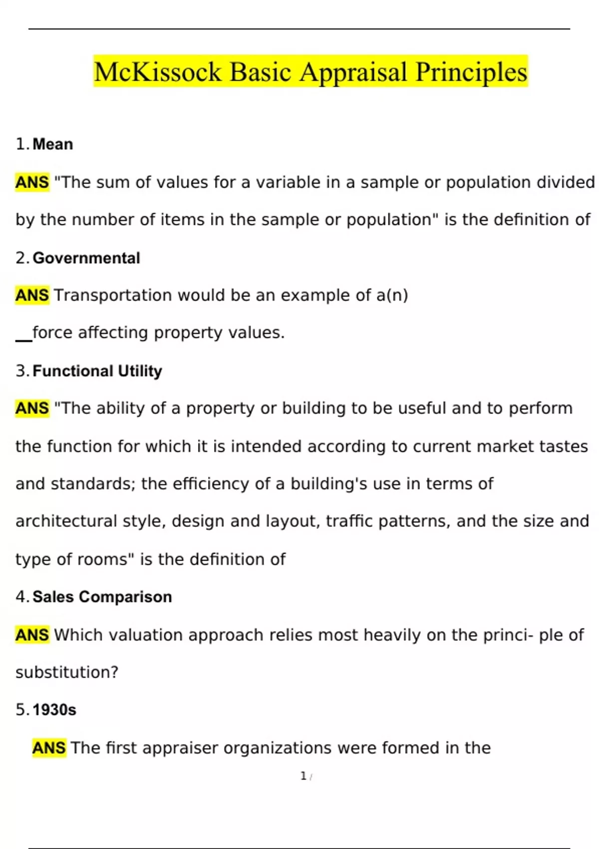 MCKISSOCK Basic Appraisal Principles Updated BUNDLED ALL MCKISSOCK Basic Appraisal Principles Study Guide Questions and Answers (2024 / 2025) (Verified Answers)