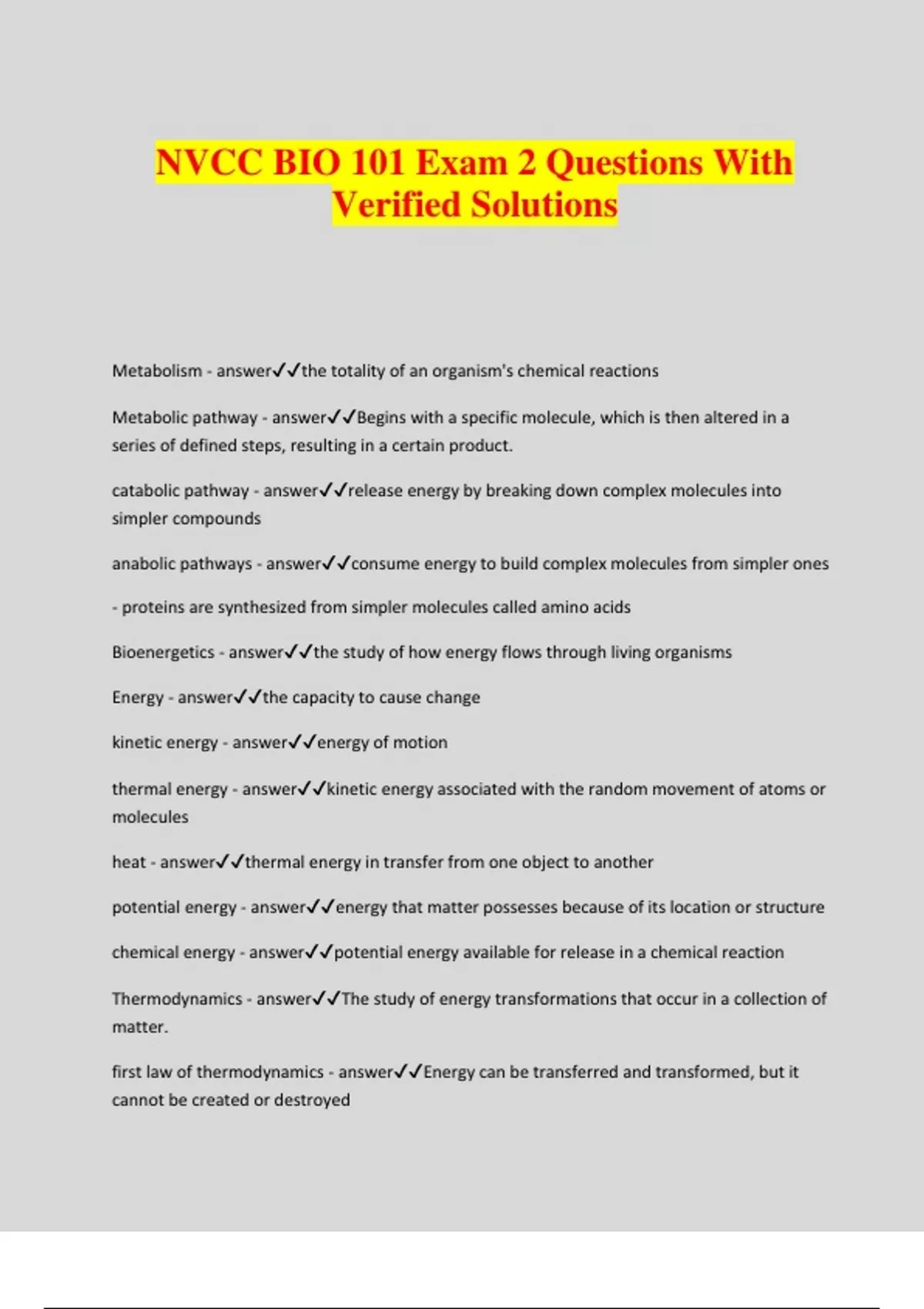 NVCC BIO 101 Exam 2 Questions With Verified Solutions
