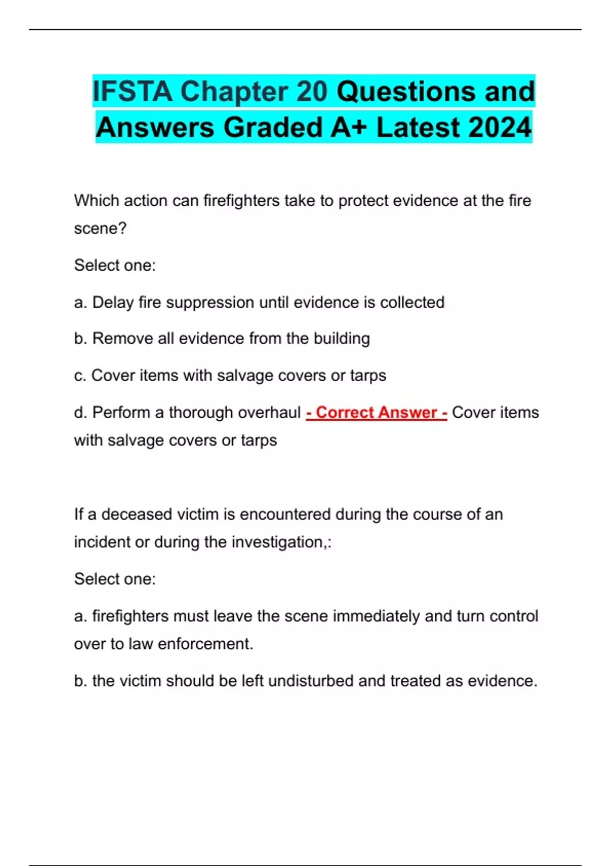 IFSTA Chapter 20 Questions and Answers Graded A+ Latest 2024