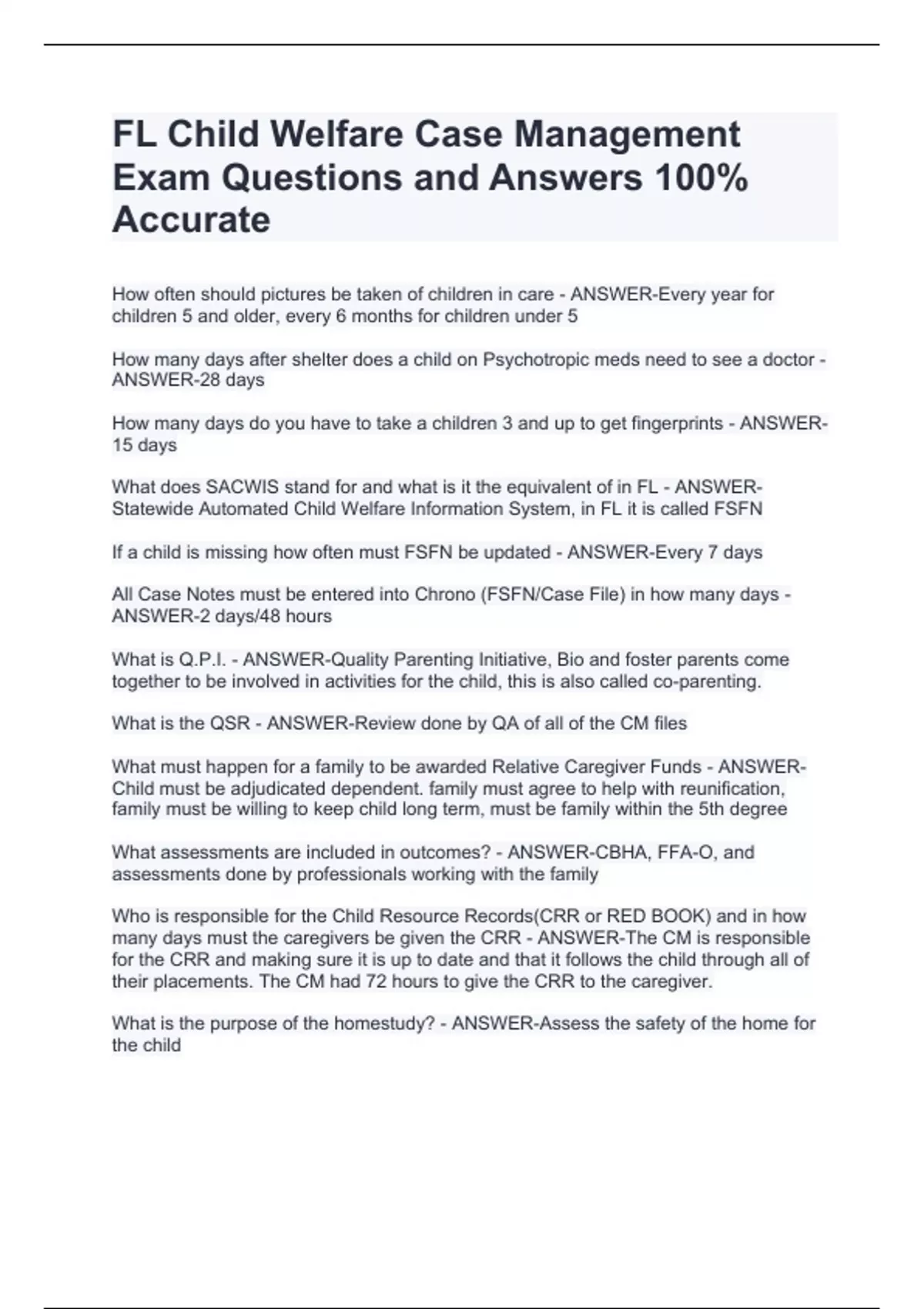 Florida Child Welfare Certification Exam BUNDLE PACK| Questions and Answers 100% VerifiedFlorida Child Welfare Certification Exam BUNDLE PACK| Questions and Answers 100% VerifiedFlorida Child Welfare Certification Exam BUNDLE PACK| Questions and Answers 100% VerifiedFlorida Child Welfare Certification Exam BUNDLE PACK| Questions and Answers 100% Ve
