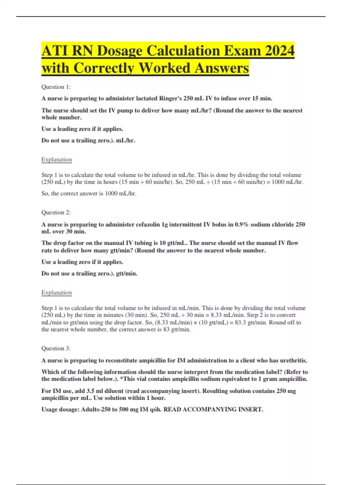 ATI DOSAGE CALCULATION EXAM 2024 COMPLETE PACKAGE DEAL FOR RN AND PN WITH VERSION 3.1