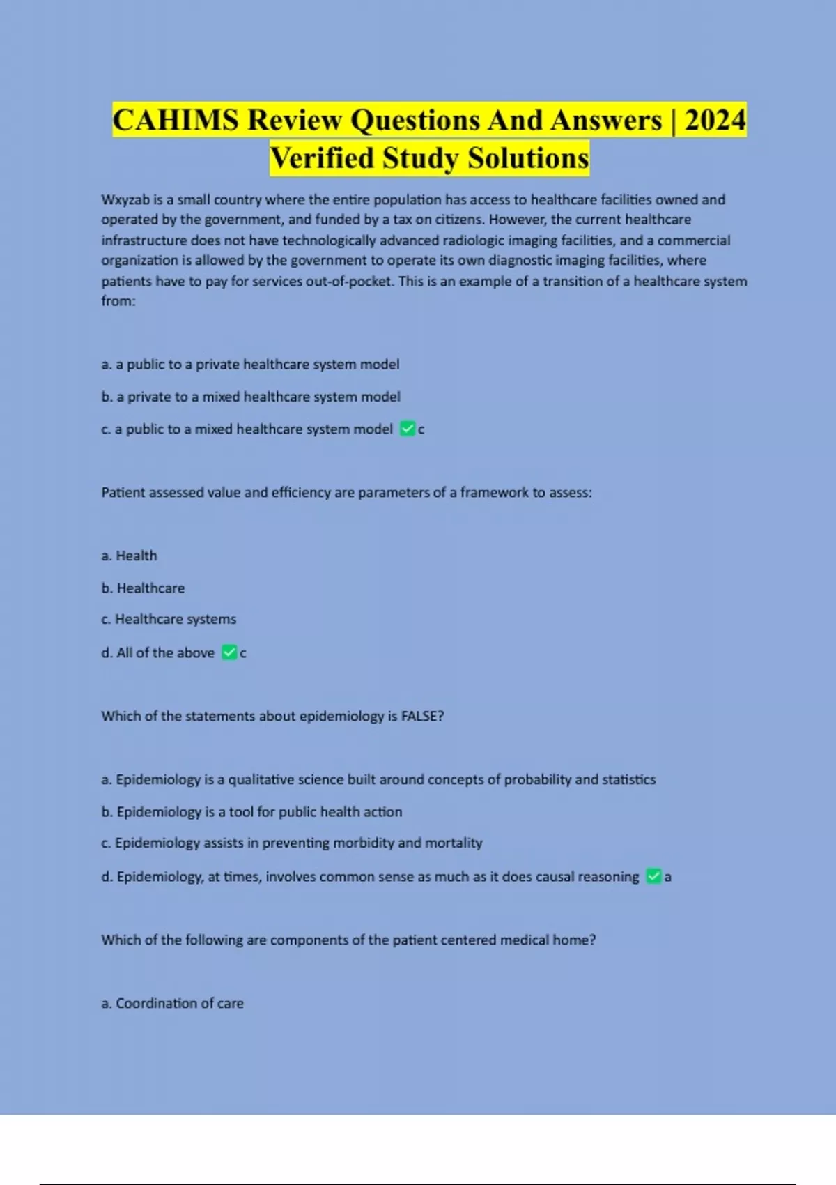 CAHIMS Verified Package Deal With Full Course Pack Graded A+ CAHIMS Review Questions And Answers | 2024 Verified Study Solutions CAHIMS Practice Exam 2 Questions And Answers | Complete Study Solution CAHIMS 1-12 Complete Questions And Answers | Verified Study Solution